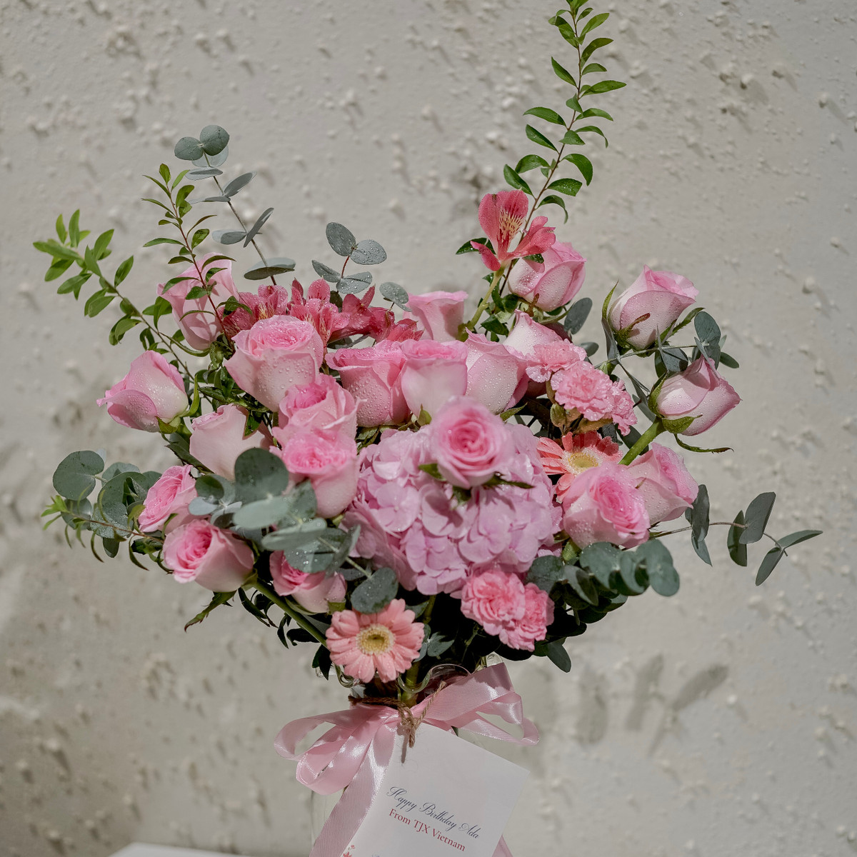 Bình hoa tone hồng mix tú cầu nữ tính tặng bạn gái không chỉ là món quà ngọt ngào, mà còn thể hiện tình yêu và sự trân trọng mà bạn dành cho cô ấy. Hãy lựa chọn bình hoa này để mang đến niềm vui và những khoảnh khắc lãng mạn, giúp bạn gái cảm nhận được sự yêu thương và đặc biệt trong từng ngày!