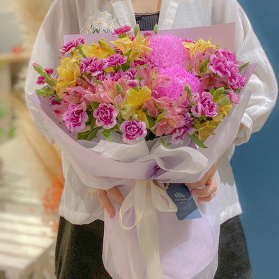 Bó cẩm chướng tượng trưng cho mẫu tử bất diệt. Bó hoa rất thích hợp để tặng mẹ trong dịp 8/3 này nha