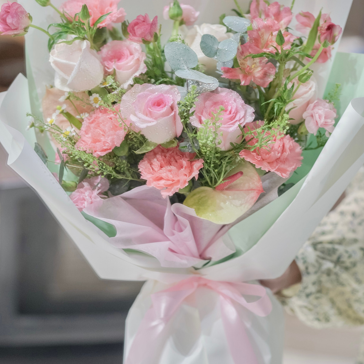 Tặng nàng bó hoa tặng người yêu tone hồng ngọt ngào, trao trọn trái tim anh đến em. Sắc hồng dịu dàng như đôi má ửng hồng mỗi khi em cười, là minh chứng cho tình yêu ngọt ngào và lãng mạn của chúng ta.