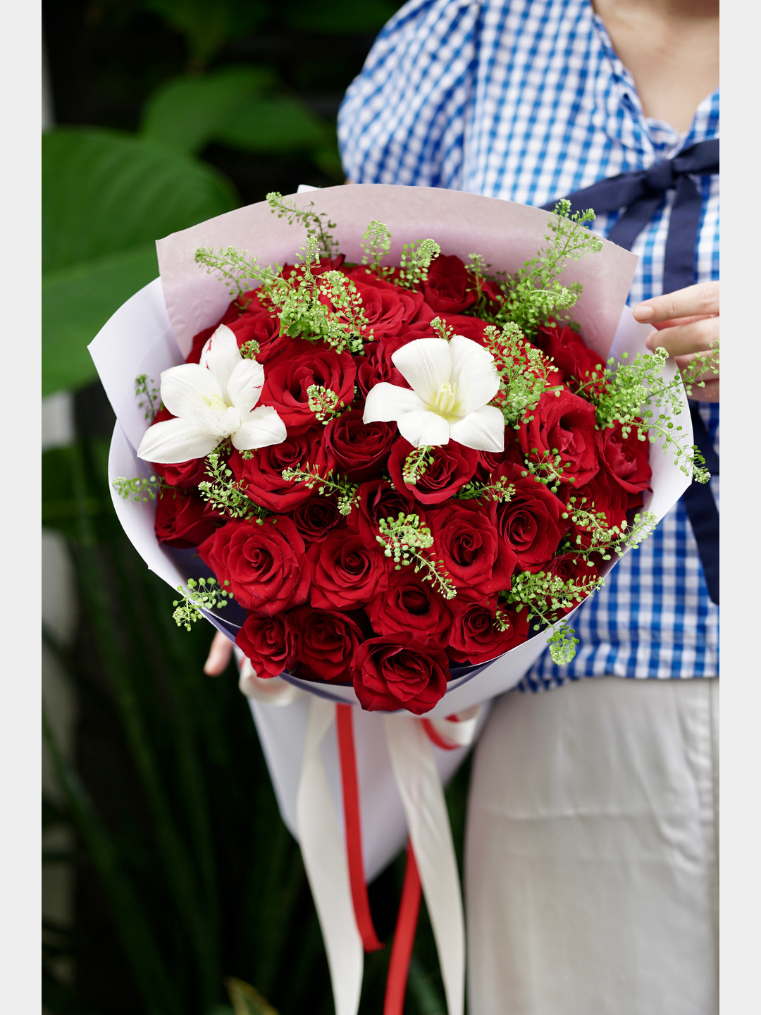 Bó hoa hồng đỏ mix tulip trắng là sự kết hợp hoàn hảo giữa tình yêu nồng nàn và vẻ đẹp thanh khiết, mang đến thông điệp ngọt ngào cho những khoảnh khắc đặc biệt. Hãy chọn ngay bó hoa này để chinh phục trái tim người thương và tạo nên những kỷ niệm đáng nhớ trong cuộc sống!