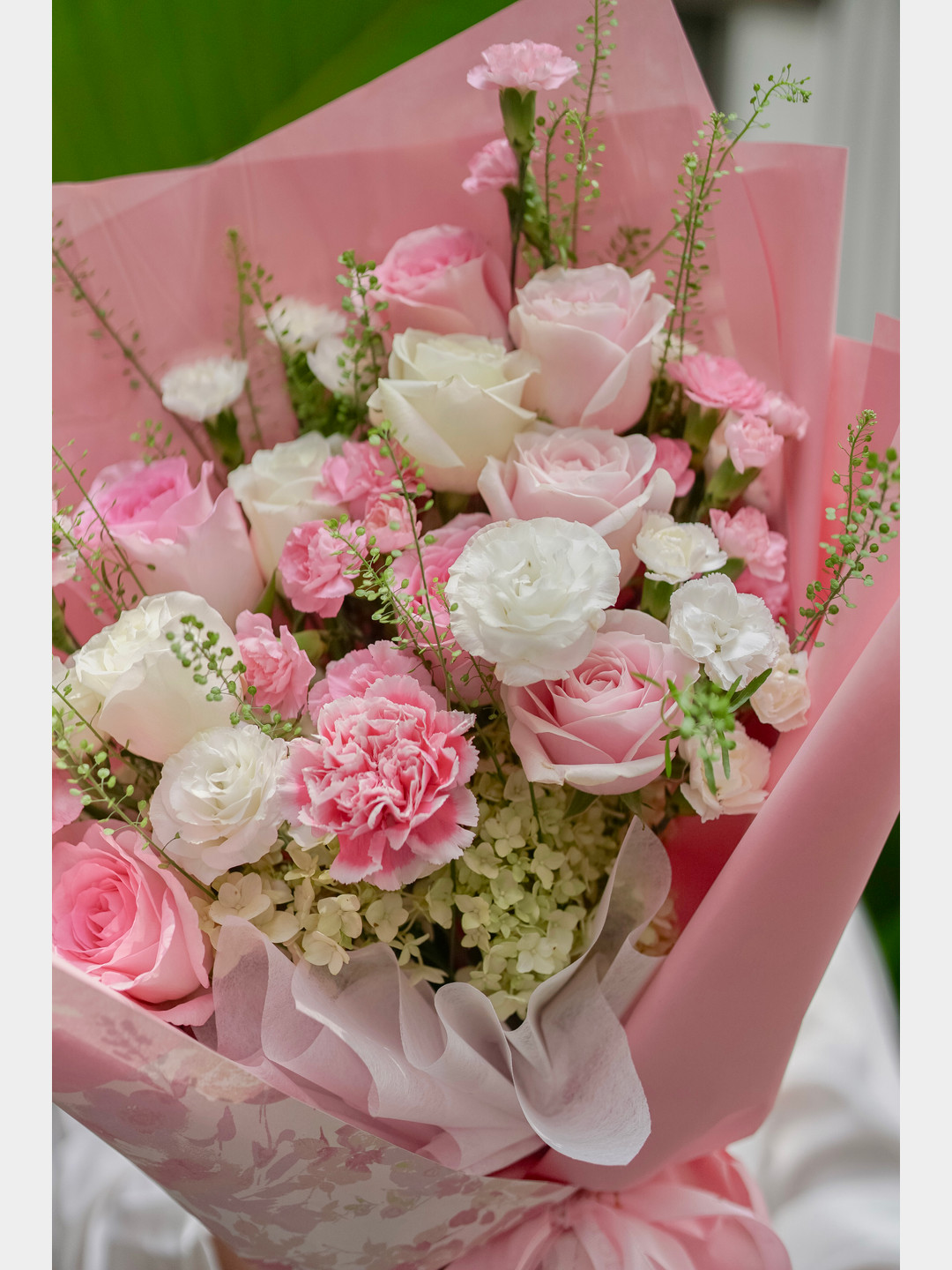 Bó hoa hồng mix cẩm chướng là món quà tuyệt vời để gửi gắm lòng biết ơn và tình yêu thương đến mẹ trong ngày sinh nhật. Sự kết hợp giữa hoa hồng và cẩm chướng mang đến vẻ đẹp ấm áp, tôn vinh nét hiền hậu của người phụ nữ tuyệt vời nhất. Hãy để sắc hoa thay lời chúc sức khỏe, tạo nên một ngày kỷ niệm thật ý nghĩa và trọn vẹn tình thân.