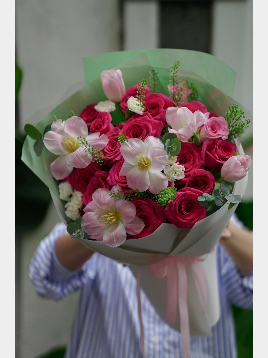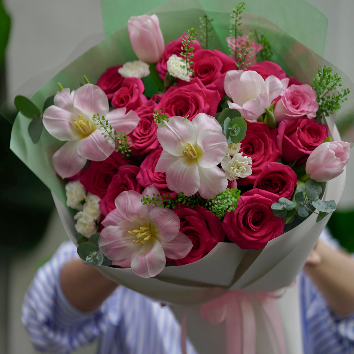 Lựa chọn bó hoa hồng pinkploy và tulip là cách tuyệt vời để bạn bày tỏ sự quan tâm tỉ mỉ và gu thẩm mỹ tinh tế dành cho một nửa của mình. Với sự phối hợp màu sắc hài hòa và chất lượng hoa tươi tuyển chọn, sản phẩm chắc chắn sẽ mang lại nụ cười rạng rỡ cùng niềm vui bất ngờ cho người nhận. Đừng ngần ngại trao đi món quà ý nghĩa này để thắt chặt thêm sợi dây tình cảm và làm cho tình yêu của hai bạn thêm phần thăng hoa, bền chặt.