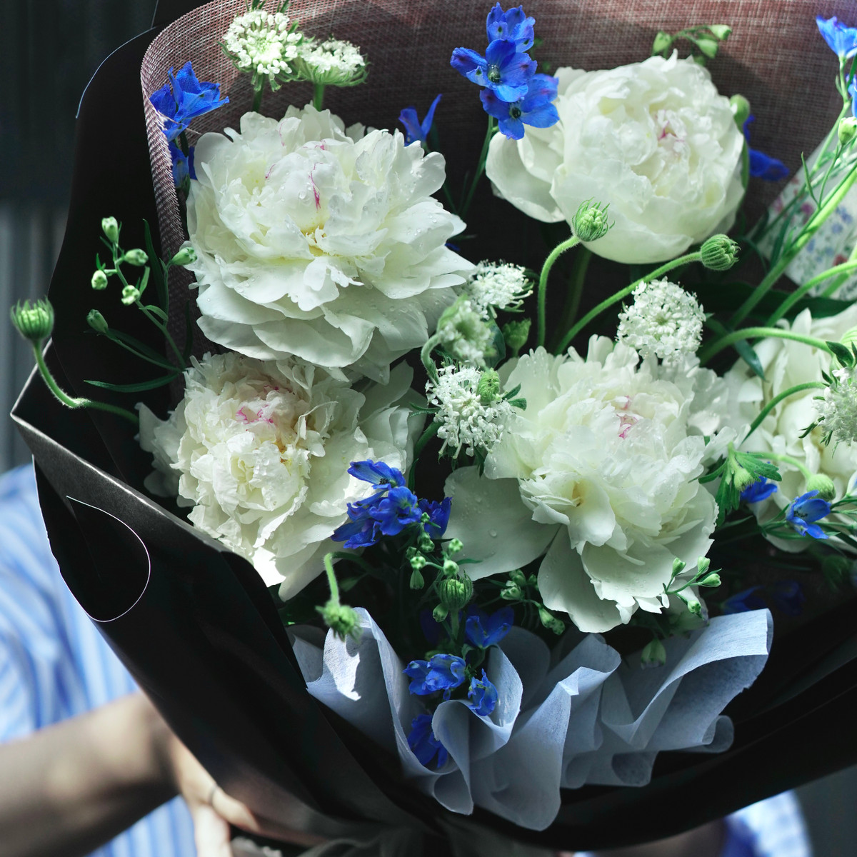 Bó hoa peony trắng mix hoa xanh dương sang trọng chính là món quà tuyệt vời để bạn gửi gắm tình cảm chân thành và tạo nên khoảnh khắc đáng nhớ. Đừng chần chừ, hãy chọn ngay để lan tỏa yêu thương và sự tinh tế trong từng cánh hoa!