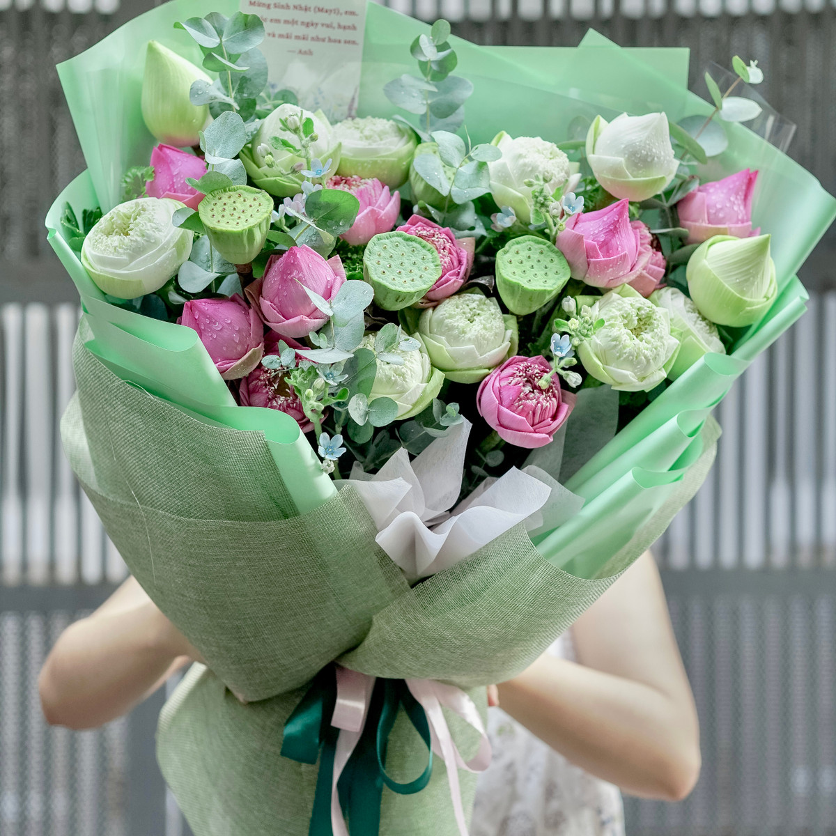Bó hoa sen hồng trắng không chỉ là món quà ý nghĩa mà còn là lời chúc bình an, hạnh phúc gửi đến người phụ nữ quan trọng nhất cuộc đời bạn. Đừng ngần ngại chọn ngay bó hoa sen tặng mẹ để làm ngày của mẹ thêm phần ngọt ngào và đáng nhớ!