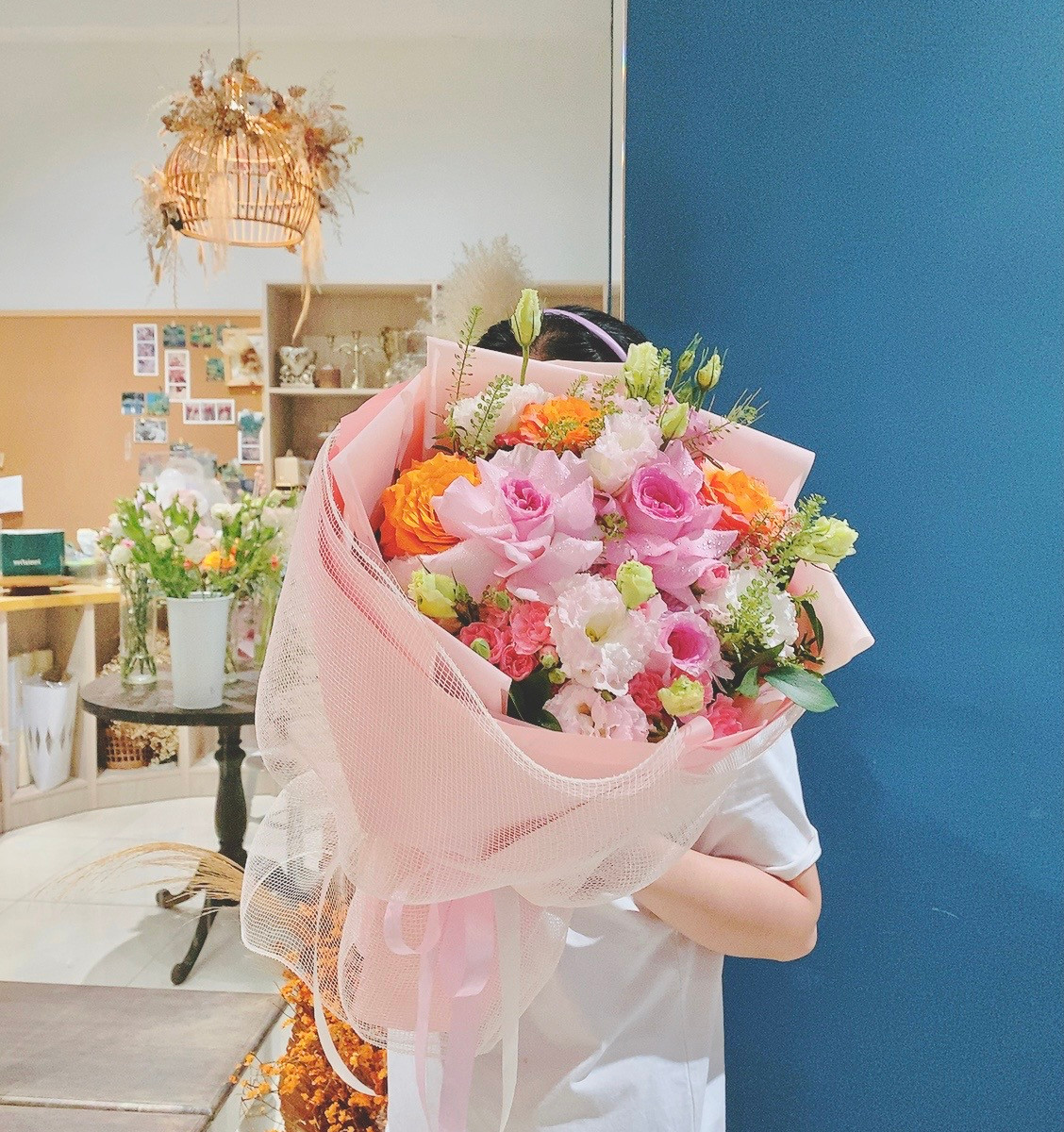 Chào người thương, mình là Thi. Tiệm hoa của mình mang phong cách Hàn Quốc, hoa lá nhẹ nhàng kết hợp tựa như 1 khúc nhạc giúp bạn gửi lời thì thầm yêu thương! Hãy nói cho mình biết nếu bạn đang băn khoăn không biết lựa chọn loại hoa nào!