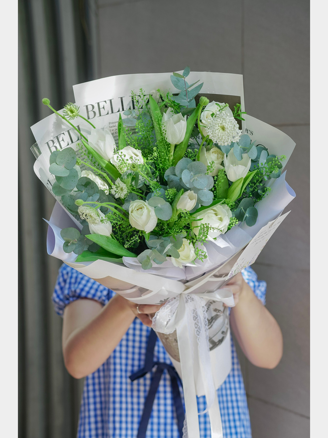Chào người thương, mình là Thi. Tiệm hoa của mình mang phong cách Hàn Quốc, hoa lá nhẹ nhàng kết hợp tựa như 1 khúc nhạc giúp bạn gửi lời thì thầm yêu thương! Hãy nói cho mình biết nếu bạn đang băn khoăn không biết lựa chọn loại hoa nào!