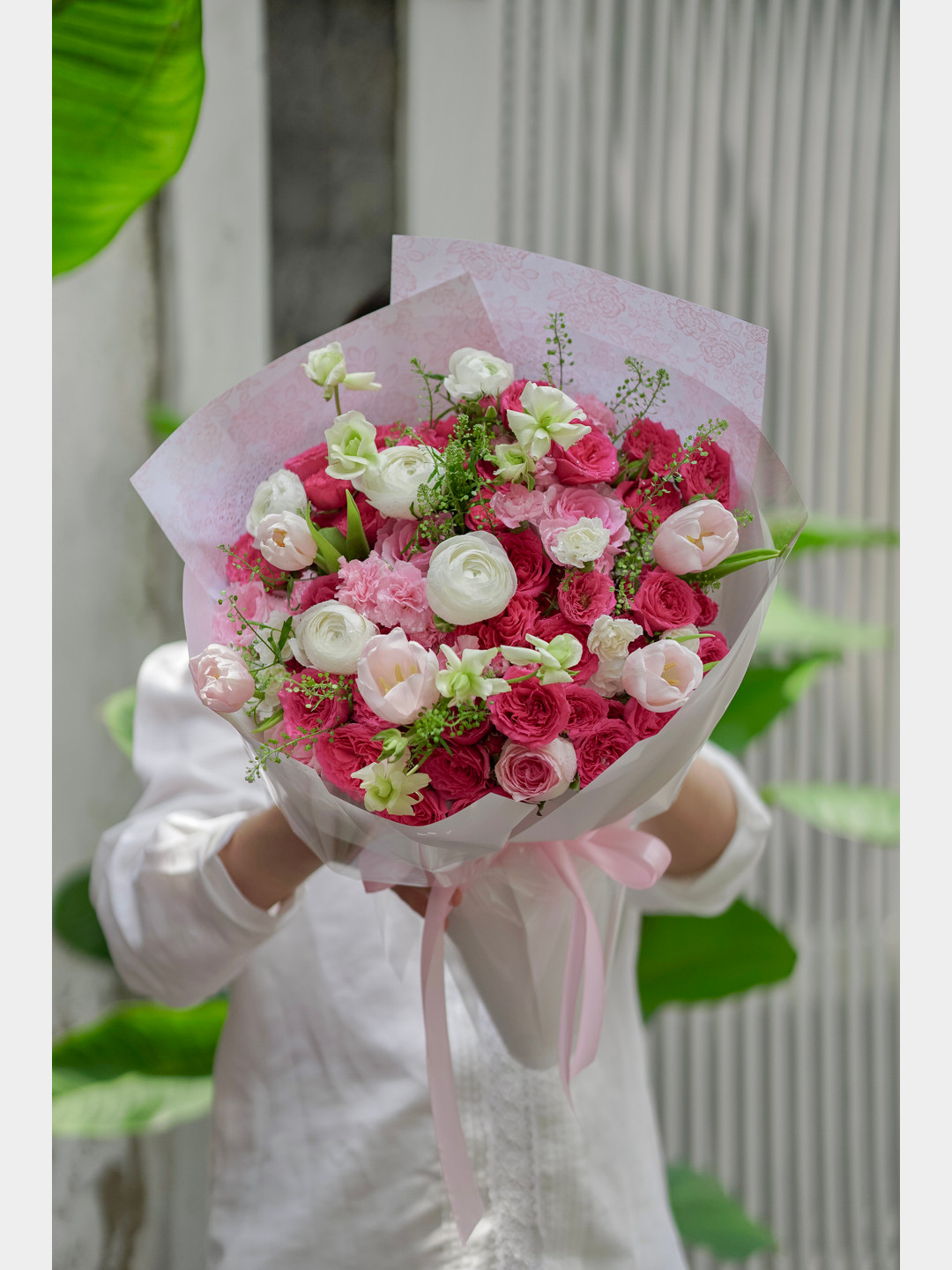 Bó hoa Sophia mix mao lương và tulip ngọt ngào là món quà tuyệt vời để gửi gắm tình cảm chân thành đến người ấy trong ngày sinh nhật. Sự kết hợp giữa sắc hoa Sophia kiêu sa, mao lương dịu dàng và tulip thanh thoát mang đến không gian lãng mạn, tràn đầy hơi ấm tình yêu. Hãy để bó hoa này thay lời chúc tốt đẹp nhất, tạo nên những kỷ niệm đáng nhớ và hạnh phúc trọn vẹn cho một nửa của bạn.