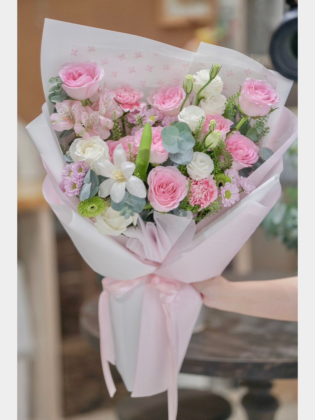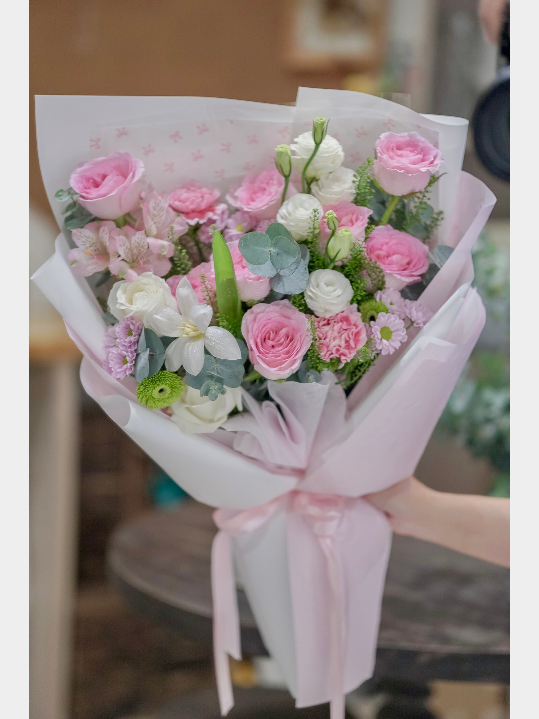 Chào người thương, mình là Thi. Tiệm hoa của mình mang phong cách Hàn Quốc, hoa lá nhẹ nhàng kết hợp tựa như 1 khúc nhạc giúp bạn gửi lời thì thầm yêu thương! Hãy nói cho mình biết nếu bạn đang băn khoăn không biết lựa chọn loại hoa nào!