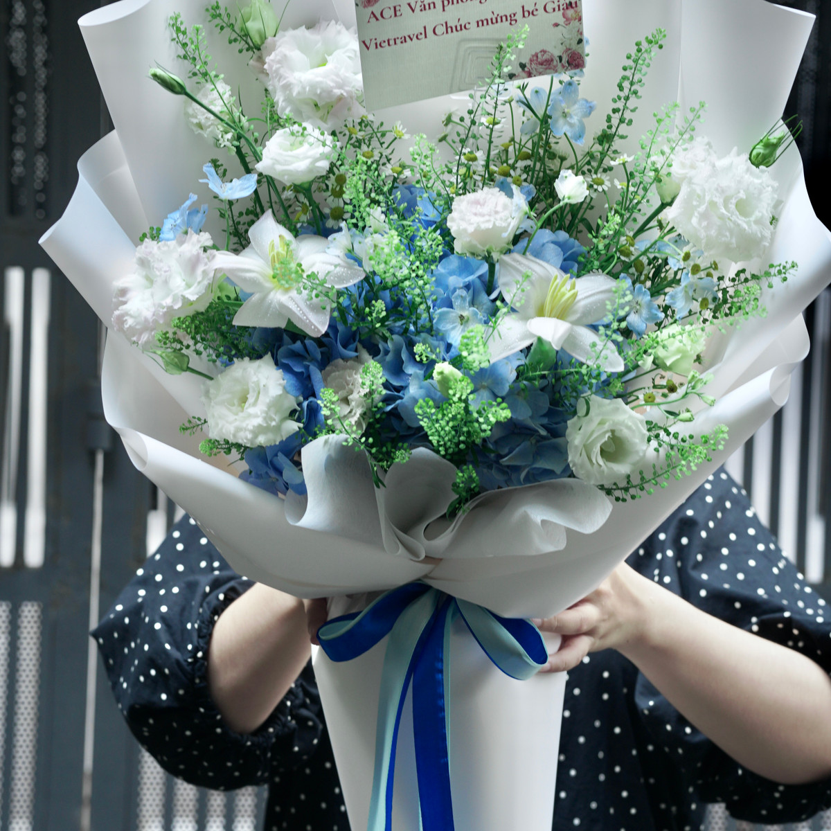 Bó hoa tú cầu xanh dương tặng sinh nhật không chỉ là món quà độc đáo, mà còn mang ý nghĩa sâu sắc về sự trung thành và tình yêu vĩnh cửu. Màu xanh dương tươi mát của hoa tú cầu sẽ làm bừng sáng không gian và mang lại cảm giác bình yên cho người nhận.