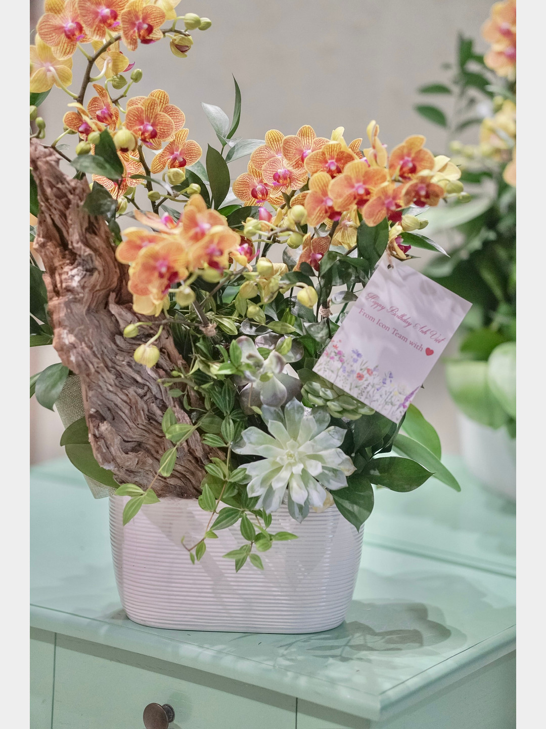 Chậu hoa lan hồ điệp mini tiểu cảnh độc đáo sang trọng là lựa chọn hoàn hảo để mang vẻ đẹp tự nhiên vào không gian sống của bạn. Với những bông hoa lan hồ điệp rực rỡ, chậu hoa này không chỉ làm sáng bừng góc nhỏ trong nhà mà còn thể hiện sự tinh tế và phong cách của người sở hữu.
