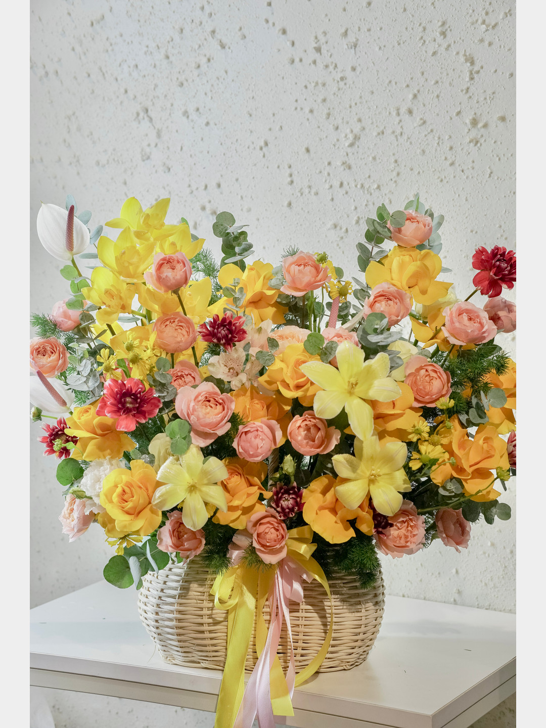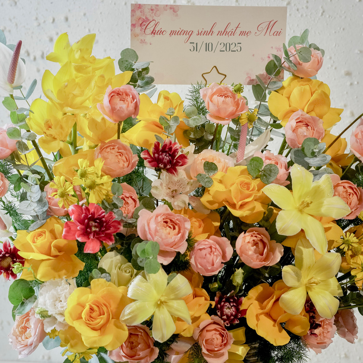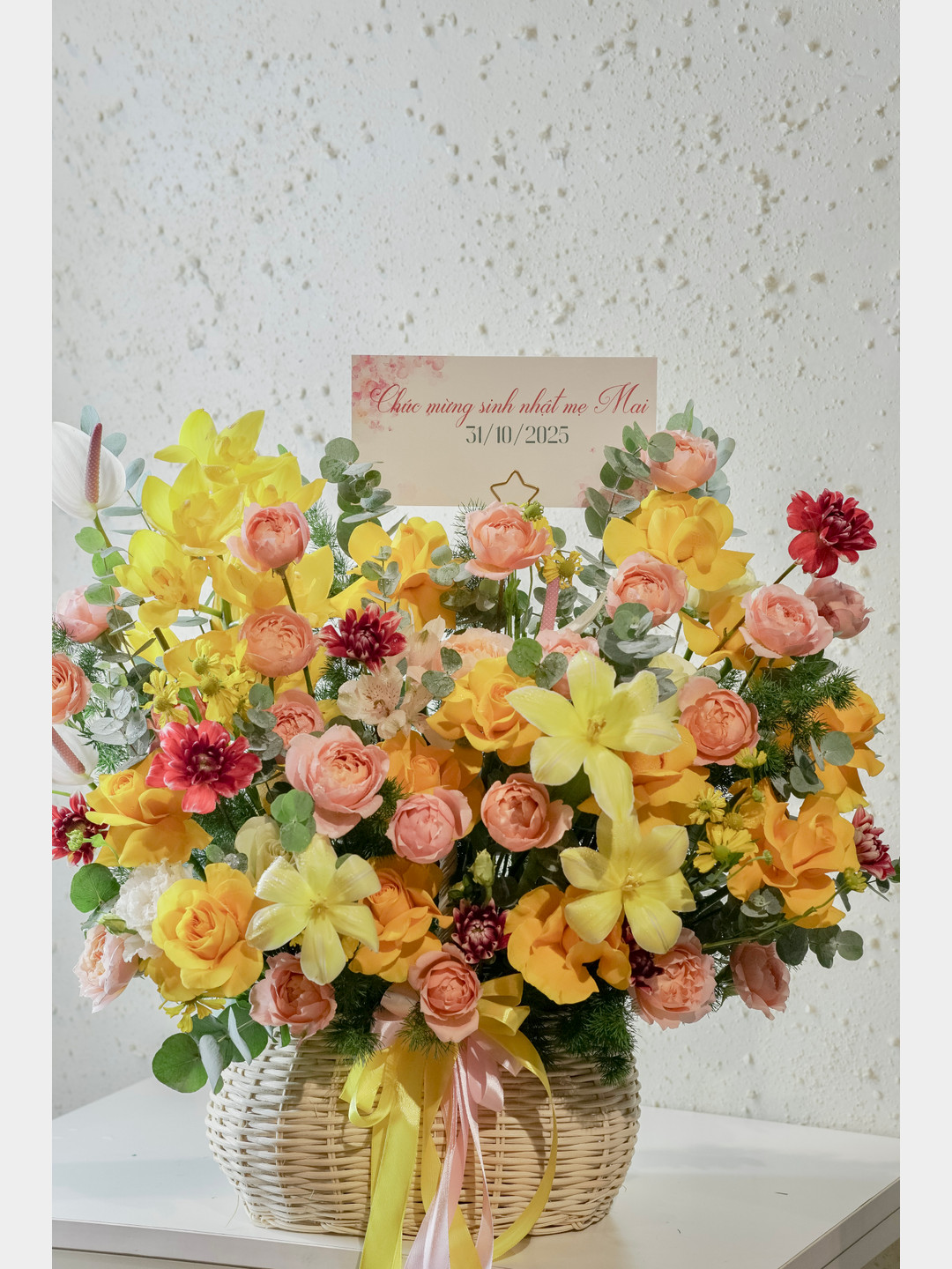 Giỏ hoa chúc mừng màu vàng rực rỡ không chỉ là món quà hoàn hảo cho dịp khai trương, mà còn mang trong mình ý nghĩa của sự thịnh vượng và niềm vui. Hãy để sắc vàng cam tươi sáng từ giỏ hoa chúc mừng này thắp sáng ngày đặc biệt của bạn và người nhận, tạo nên những kỷ niệm đáng nhớ!