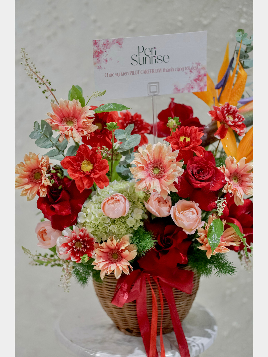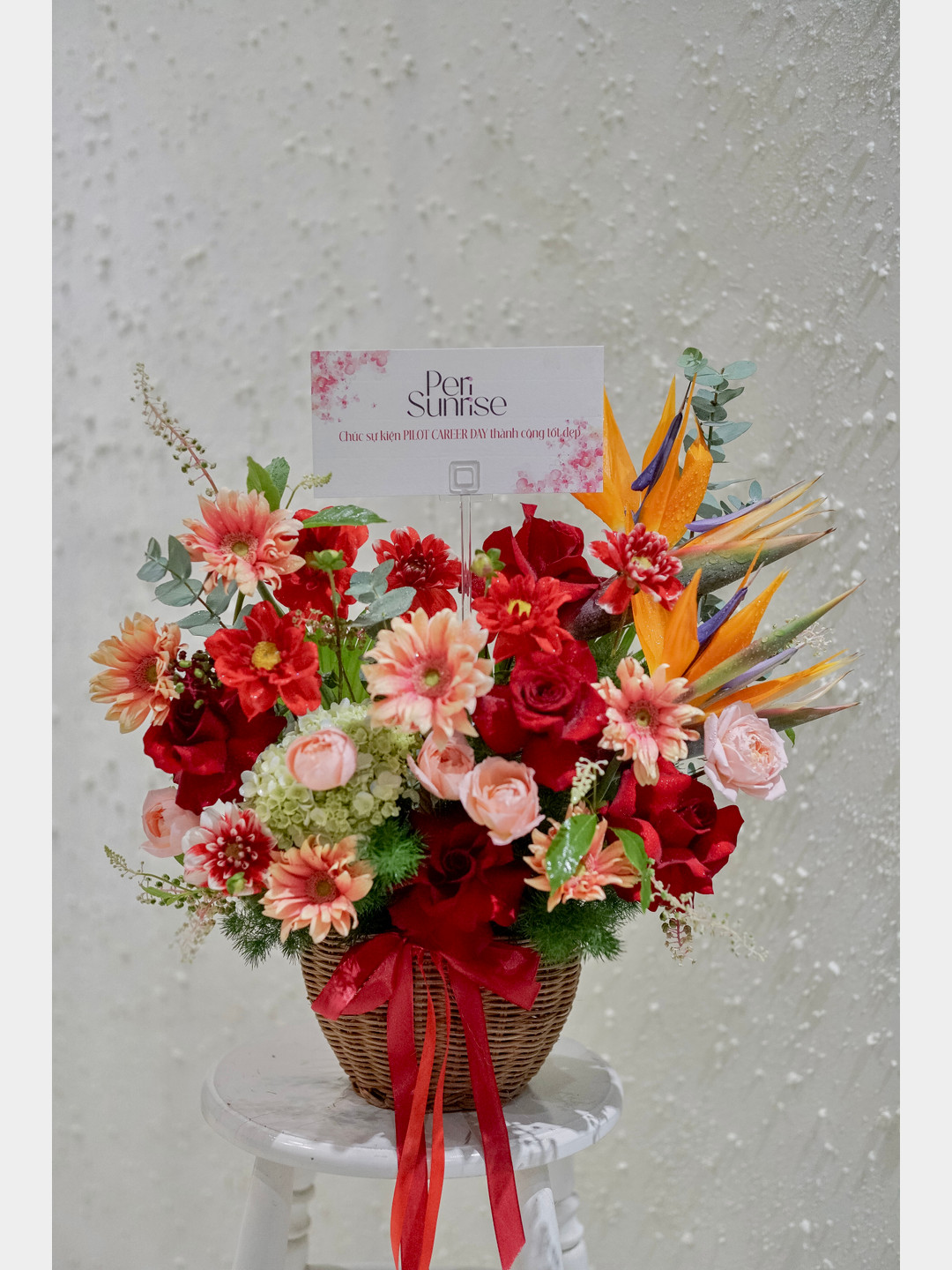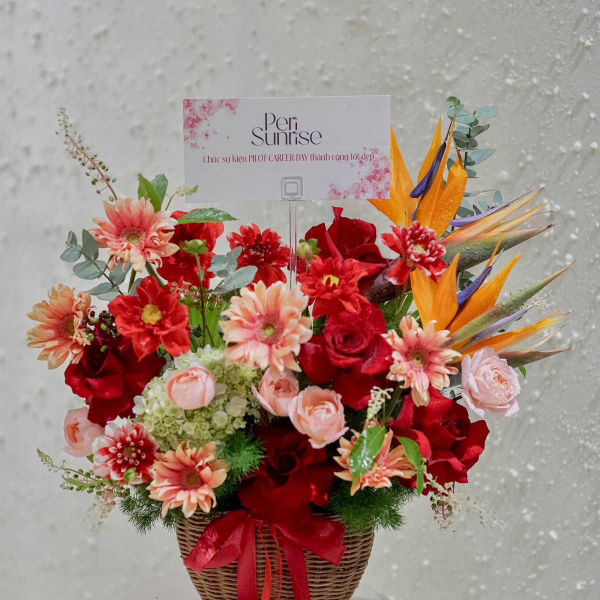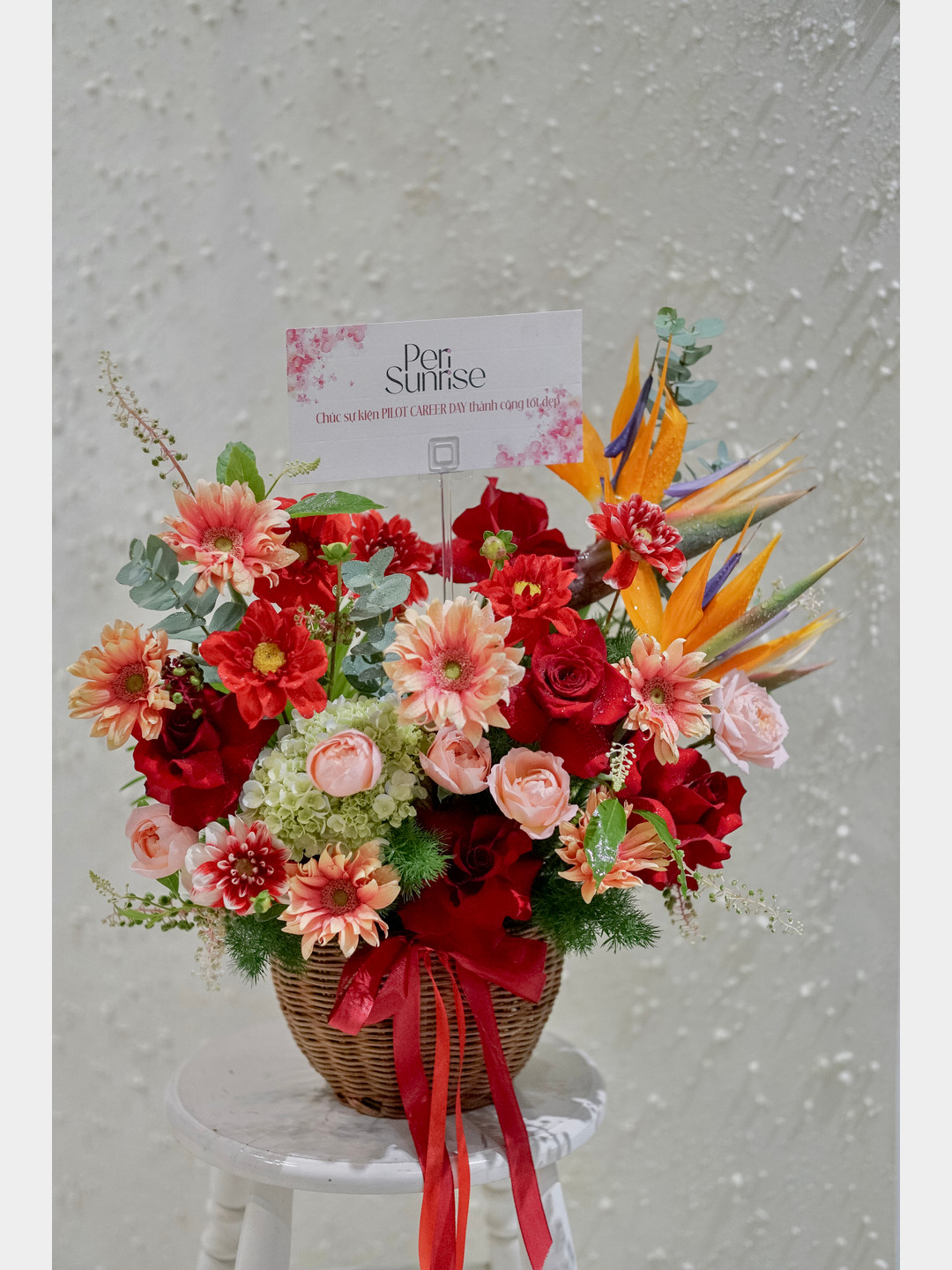Giỏ hoa đỏ cam chúc mừng khai trương không chỉ là món quà tuyệt đẹp, mà còn mang ý nghĩa chúc phúc cho sự khởi đầu thuận lợi và thành công rực rỡ. Hãy lựa chọn giỏ hoa này để gửi gắm những lời chúc tốt đẹp nhất đến người thân yêu, giúp họ cảm nhận được sự ủng hộ và tình cảm chân thành trong ngày đặc biệt của mình!