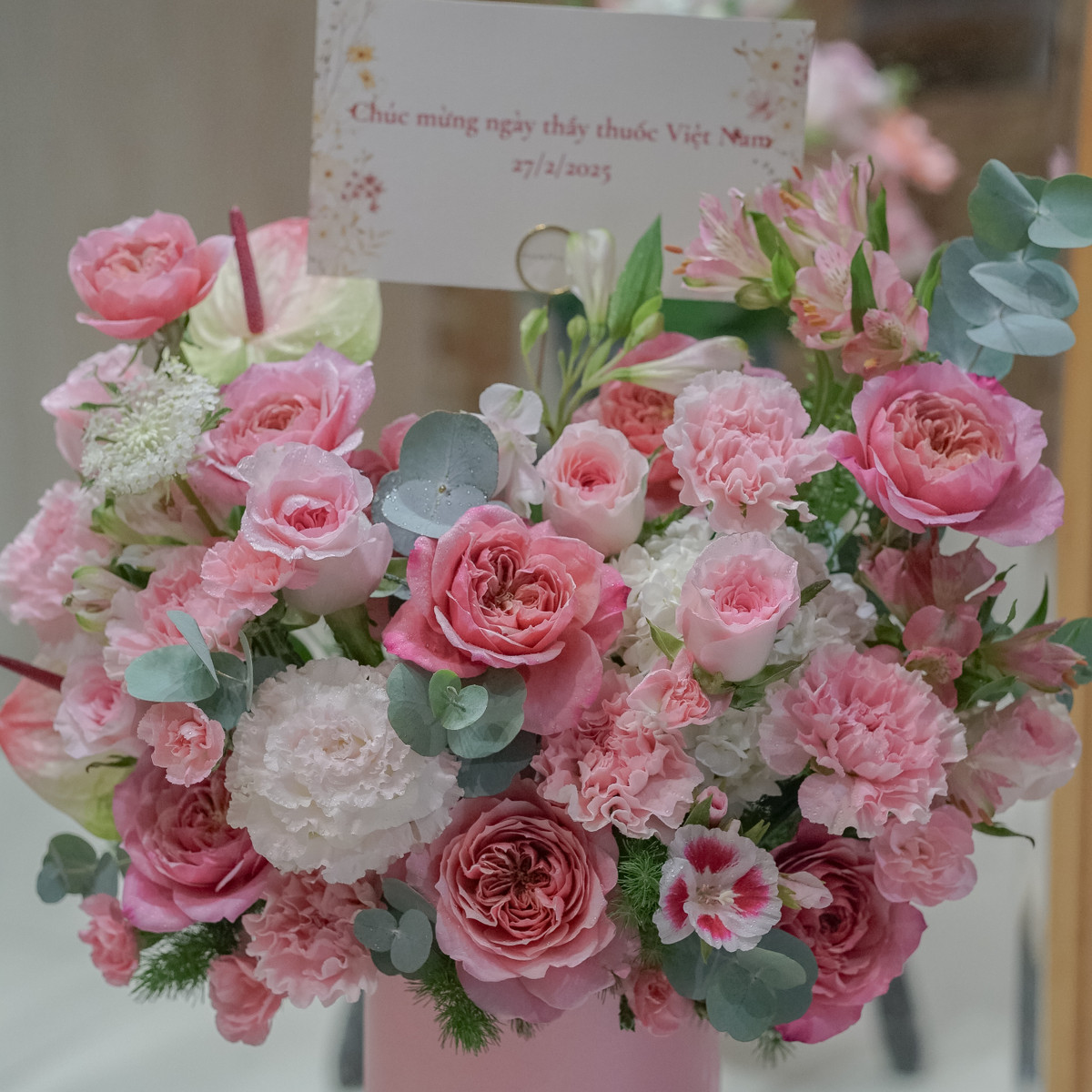 Giỏ hoa tone hồng sang trọng là món quà hoàn hảo để tặng mẹ, mang đến vẻ đẹp quyến rũ và tinh tế. Màu hồng không chỉ thể hiện sự lãng mạn mà còn biểu thị cho tình yêu chân thành và sự ngưỡng mộ sâu sắc.