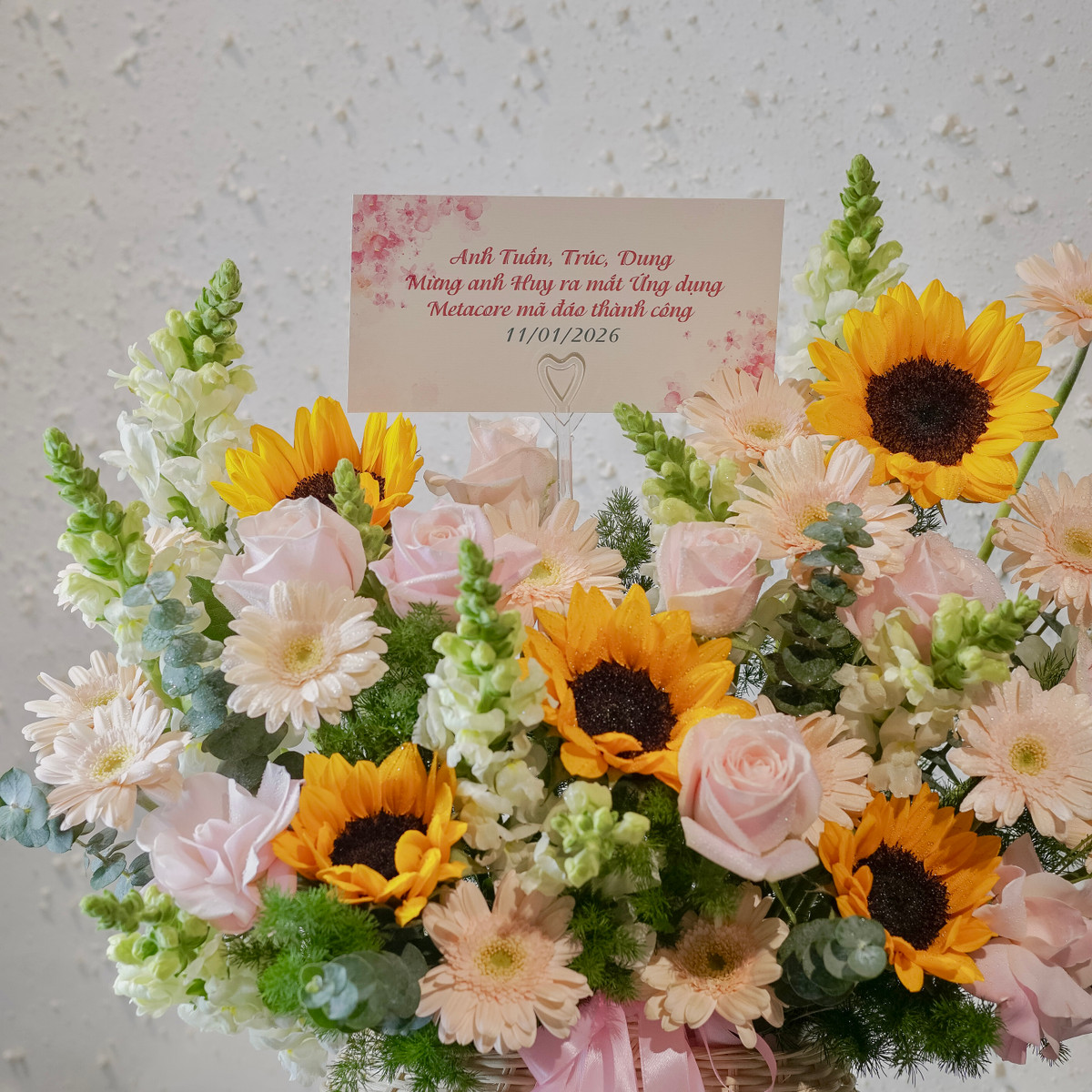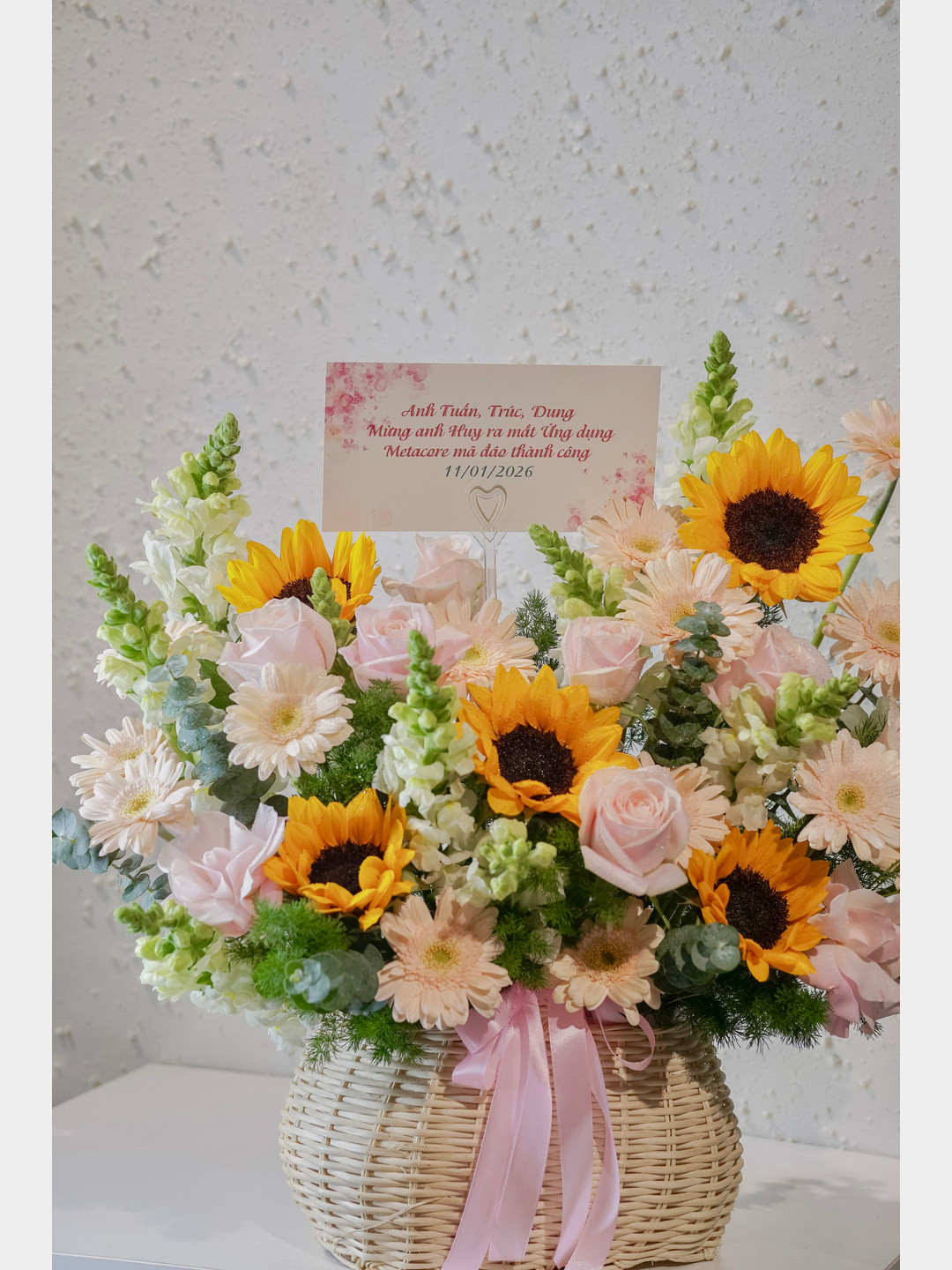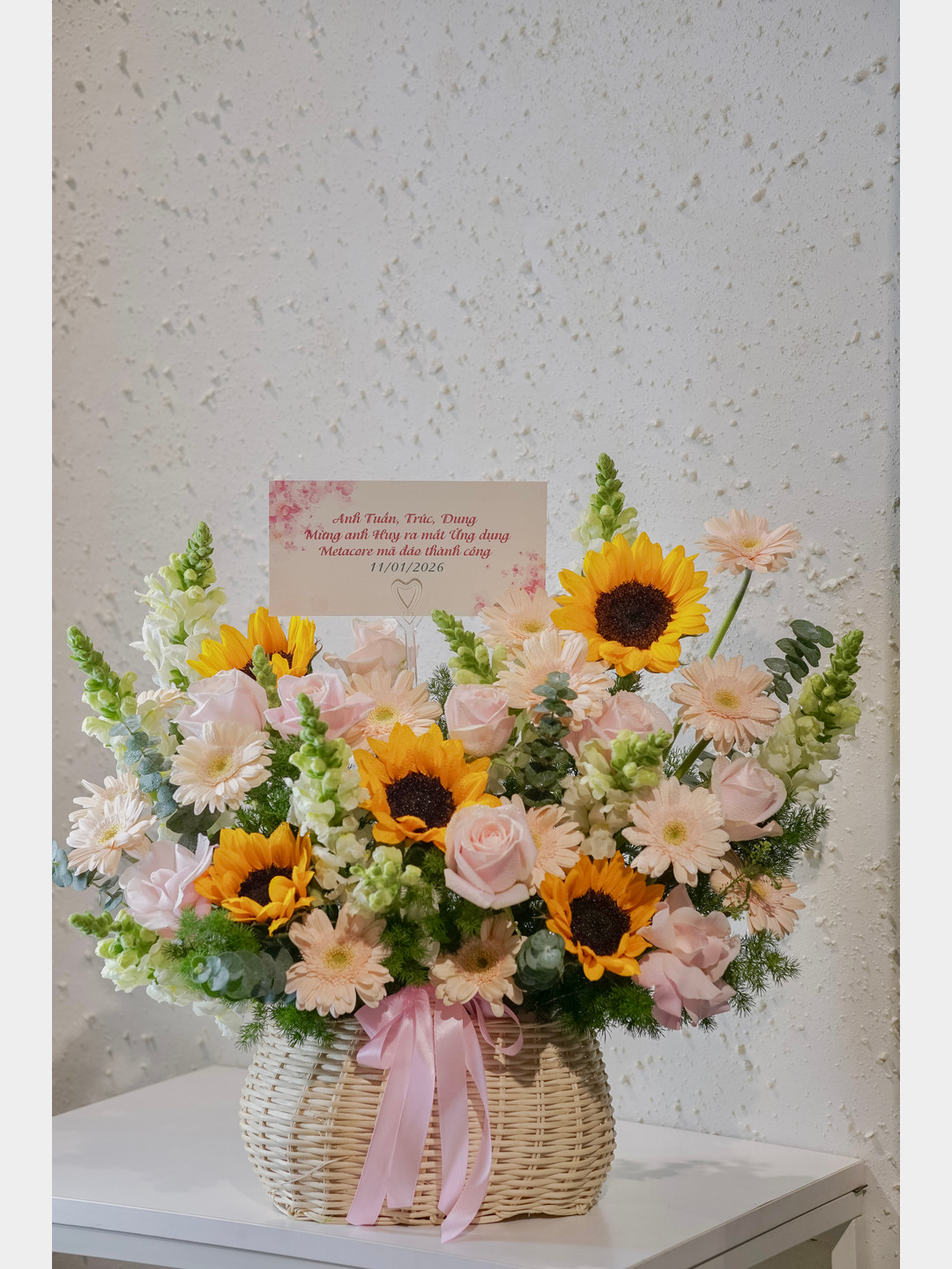 Giỏ hoa hướng dương khai trương không chỉ là món quà chúc mừng, mà còn là biểu tượng của sự tươi mới và hy vọng cho những khởi đầu đầy hứa hẹn.