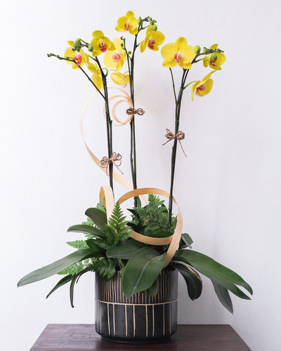 Giỏ hoa lan hồ điệp vàng phù hợp tặng bà và mẹ cho các dịp mừng sinh nhật, tặng thầy cô dịp lễ 20/11 và các dịp chúc mừng đặc biệt khác