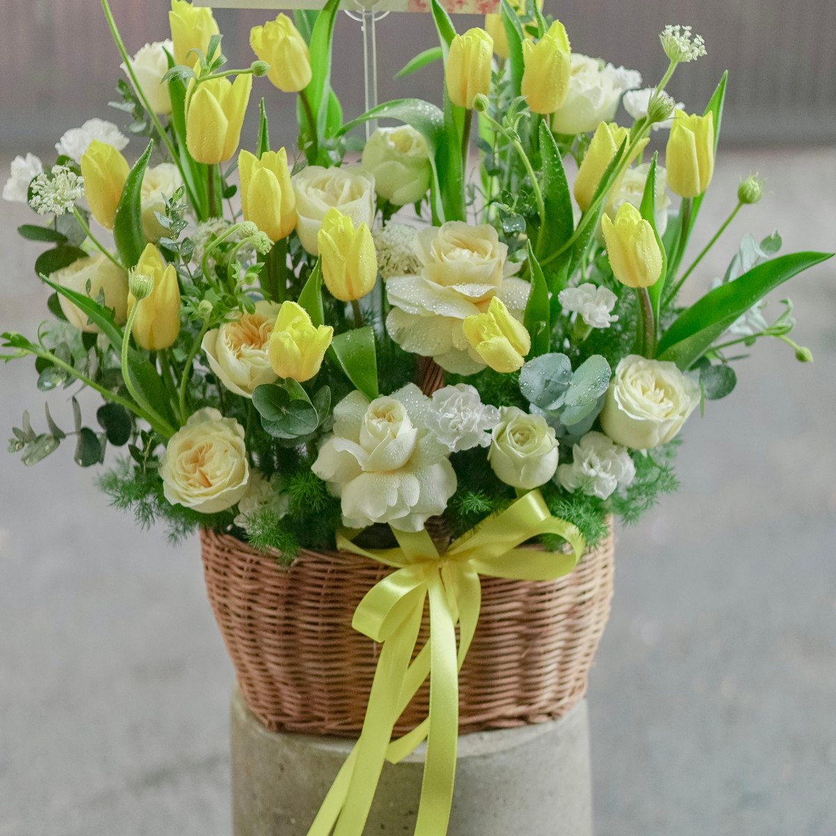 Hãy để Giỏ hoa tulip vàng thay bạn bày tỏ sự ngưỡng mộ và lòng biết ơn đối với sự dẫn dắt tài tình của sếp.