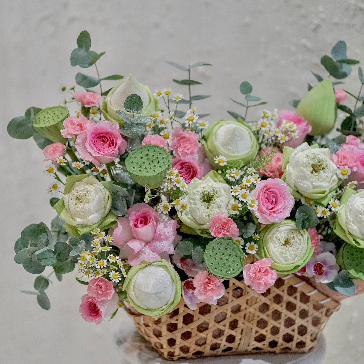 Giỏ hoa sen mix hoa hồng - giỏ hoa sinh nhật tặng mẹ không chỉ là món quà ý nghĩa, mà còn thể hiện lòng biết ơn và tình yêu thương vô bờ bến. Sự kết hợp giữa hoa sen thanh khiết và hoa hồng rực rỡ sẽ mang đến vẻ đẹp sang trọng, làm bừng sáng ngày đặc biệt của mẹ.