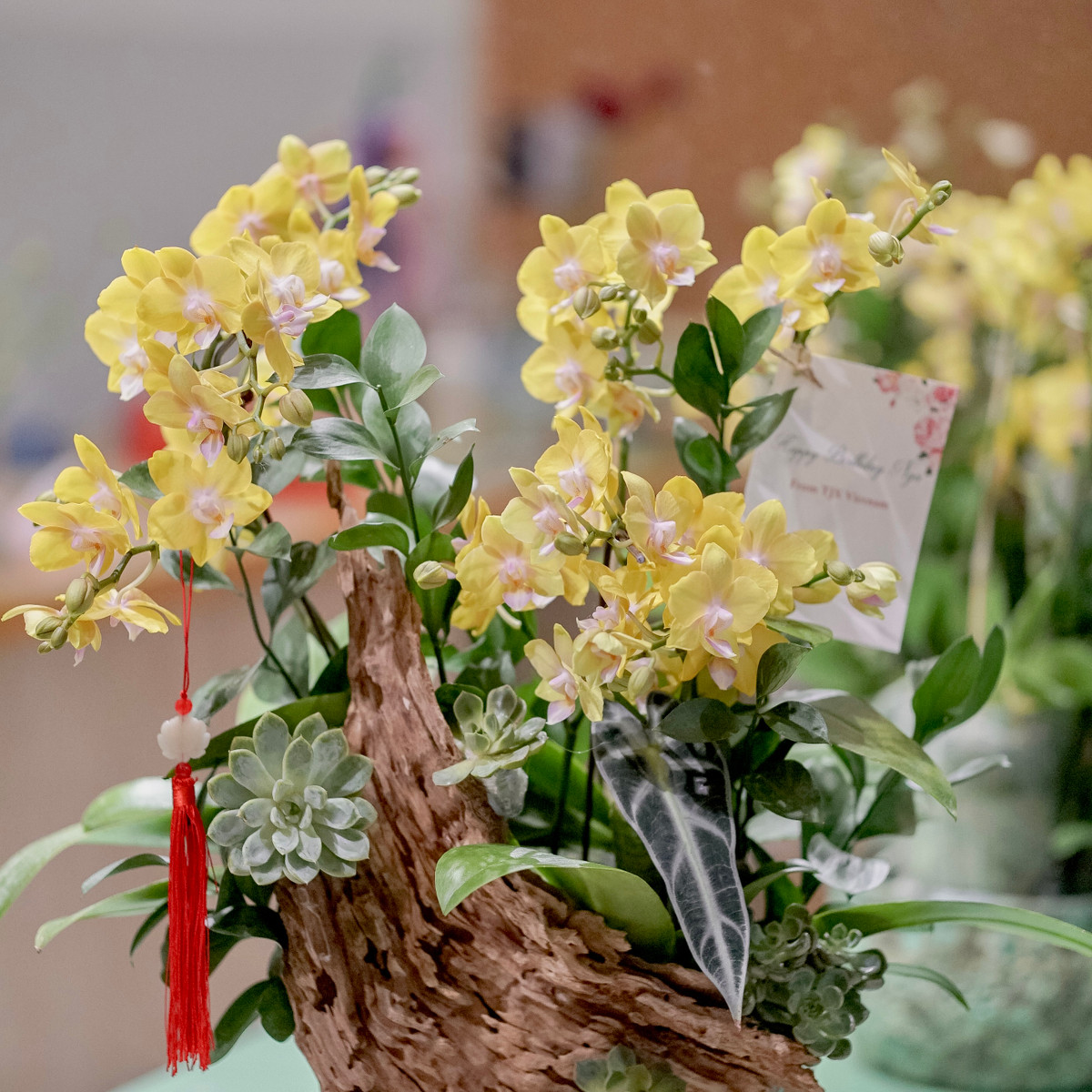 Hãy làm bừng sáng không gian sống với lan hồ điệp vàng - chậu lan hồ điệp mini tiểu cảnh độc đáo, món quà tinh tế đầy sức sống và may mắn. Sắc vàng rực rỡ của hoa lan hồ điệp như ánh nắng ấm áp, mang đến năng lượng tích cực và vẻ đẹp sang trọng cho mọi góc nhỏ.