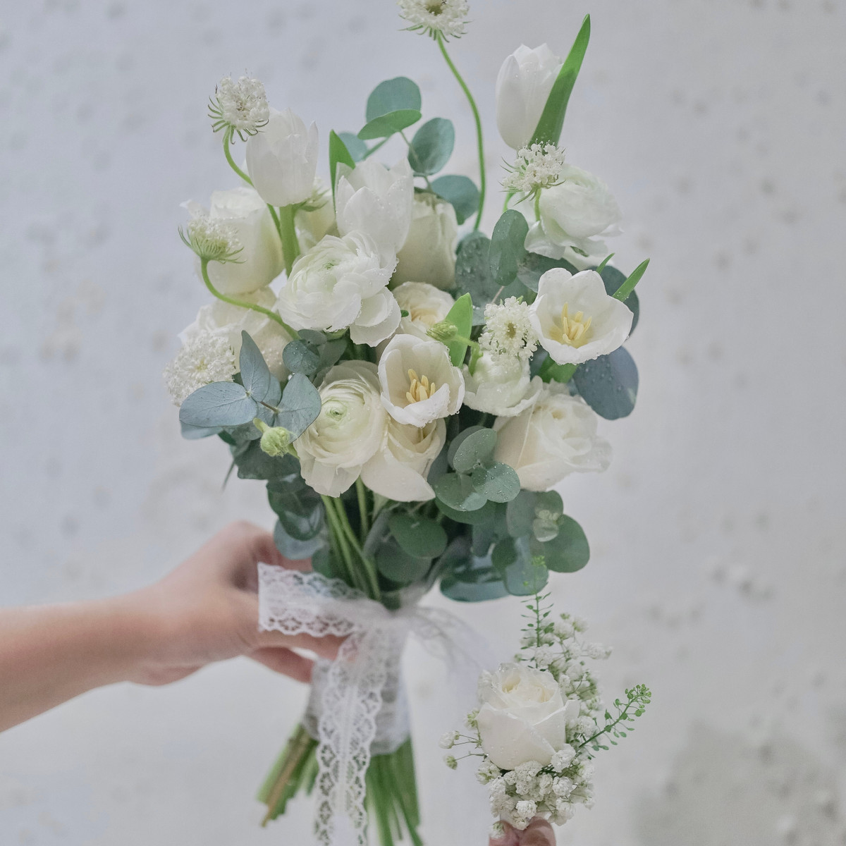 Với sự kết hợp hoàn hảo giữa tulip trắng và mao lương, bó hoa tạo nên một tổng thể lãng mạn, đáng yêu, khiến mọi ánh nhìn đều say đắm. Đặt ngay bó hoa cưới tulip trắng để lưu giữ khoảnh khắc ngọt ngào và trọn vẹn nhất của tình yêu bạn nhé!