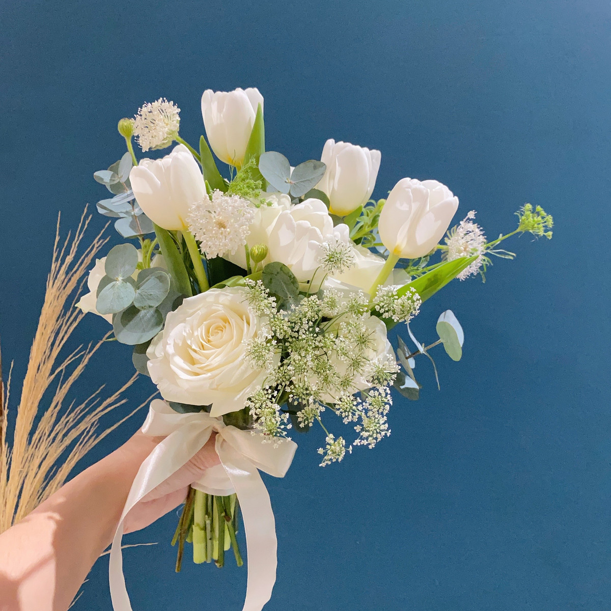 Bó hoa cưới tulip trắng phù hợp 1m55-1m65