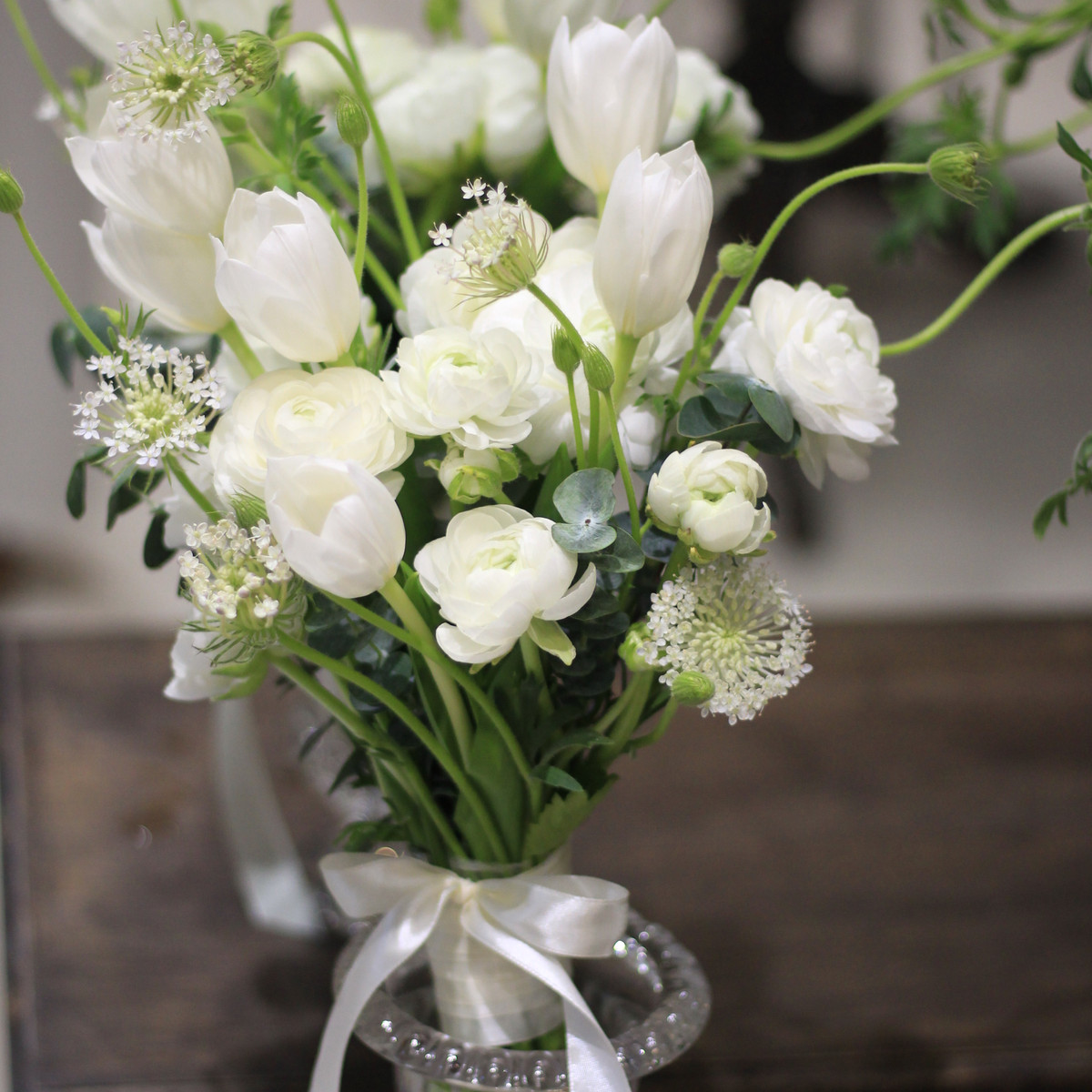Bó hoa cưới tulip trắng phù hợp 1m55-1m65