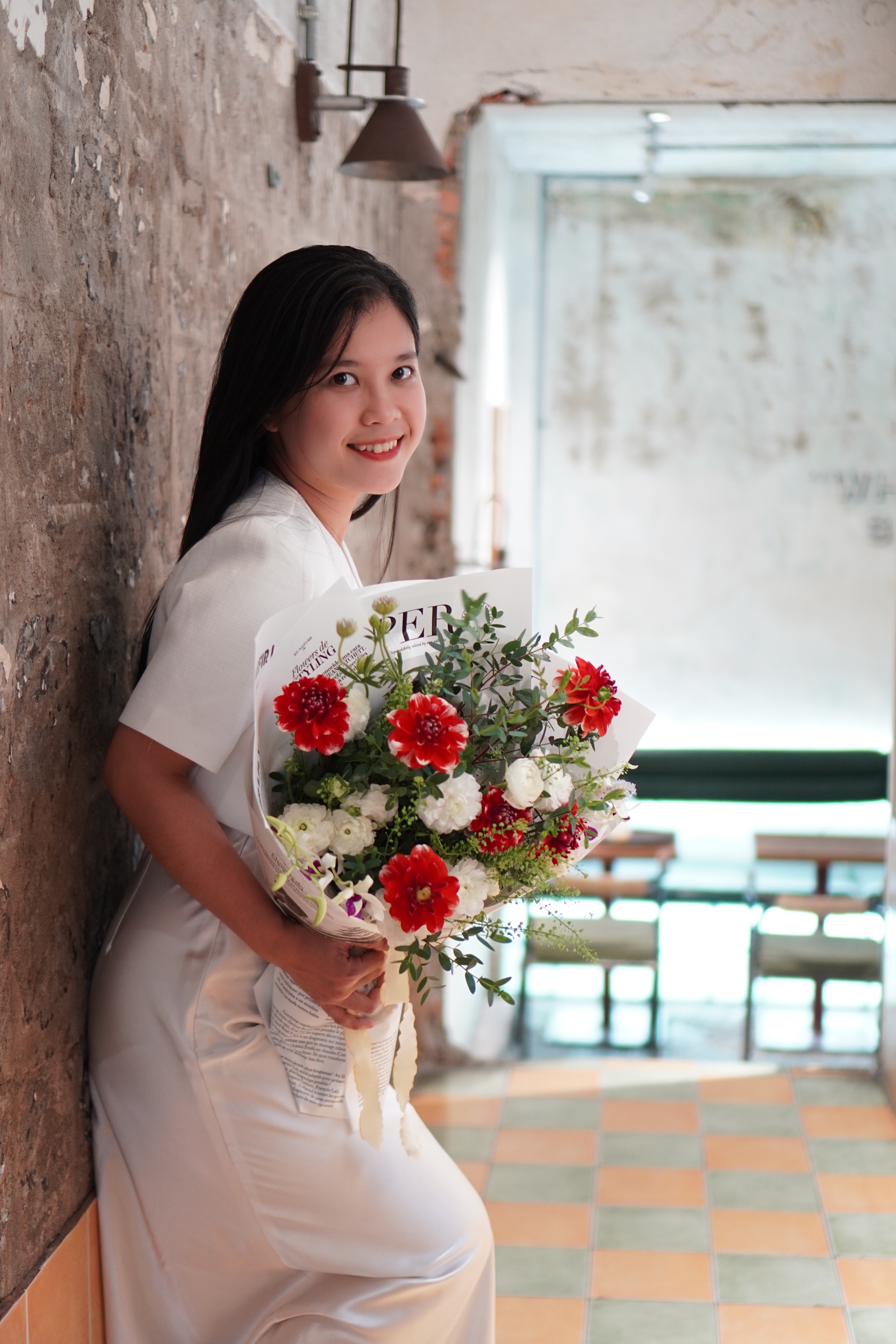 Chào người thương, mình là Thi. Tiệm hoa của mình mang phong cách Hàn Quốc, hoa lá nhẹ nhàng kết hợp tựa như 1 khúc nhạc giúp bạn gửi lời thì thầm yêu thương! Hãy nói cho mình biết nếu bạn đang băn khoăn không biết lựa chọn loại hoa nào!