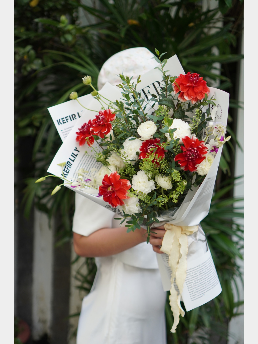 Giáng sinh đang đến gần, mùa nào thức nấy. Poem gửi bạn một gợi ý tuyệt vời cho tiệc sinh nhật tháng 12, tone màu đỏ của thược dược mang ý nghĩa tình yêu ấm áp và lâu bền, hoa mao lương e ấp sang trọng đại diện cho mong muốn, khao khát được kết nối nhiều hơn. Gửi bó hoa này đến người thương để khẽ nói rằng "tôi nhớ và mong muốn được kết nối với bạn rất nhiều"