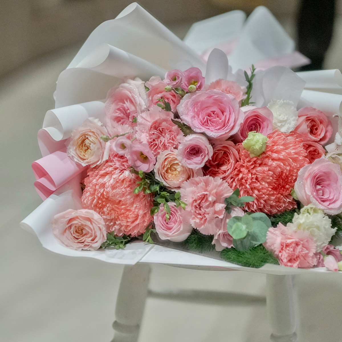 Hãy dành tặng mẹ yêu của bạn bó hoa tặng mẹ - bó hoa cúc mẫu đơn tone hồng cam tươi sáng, ngọt ngào và đầy ý nghĩa. Sắc hồng cam ấm áp của cúc mẫu đơn không chỉ thể hiện tình yêu thương chân thành mà còn mang đến vẻ đẹp lãng mạn, dịu dàng như vòng tay mẹ bao la.