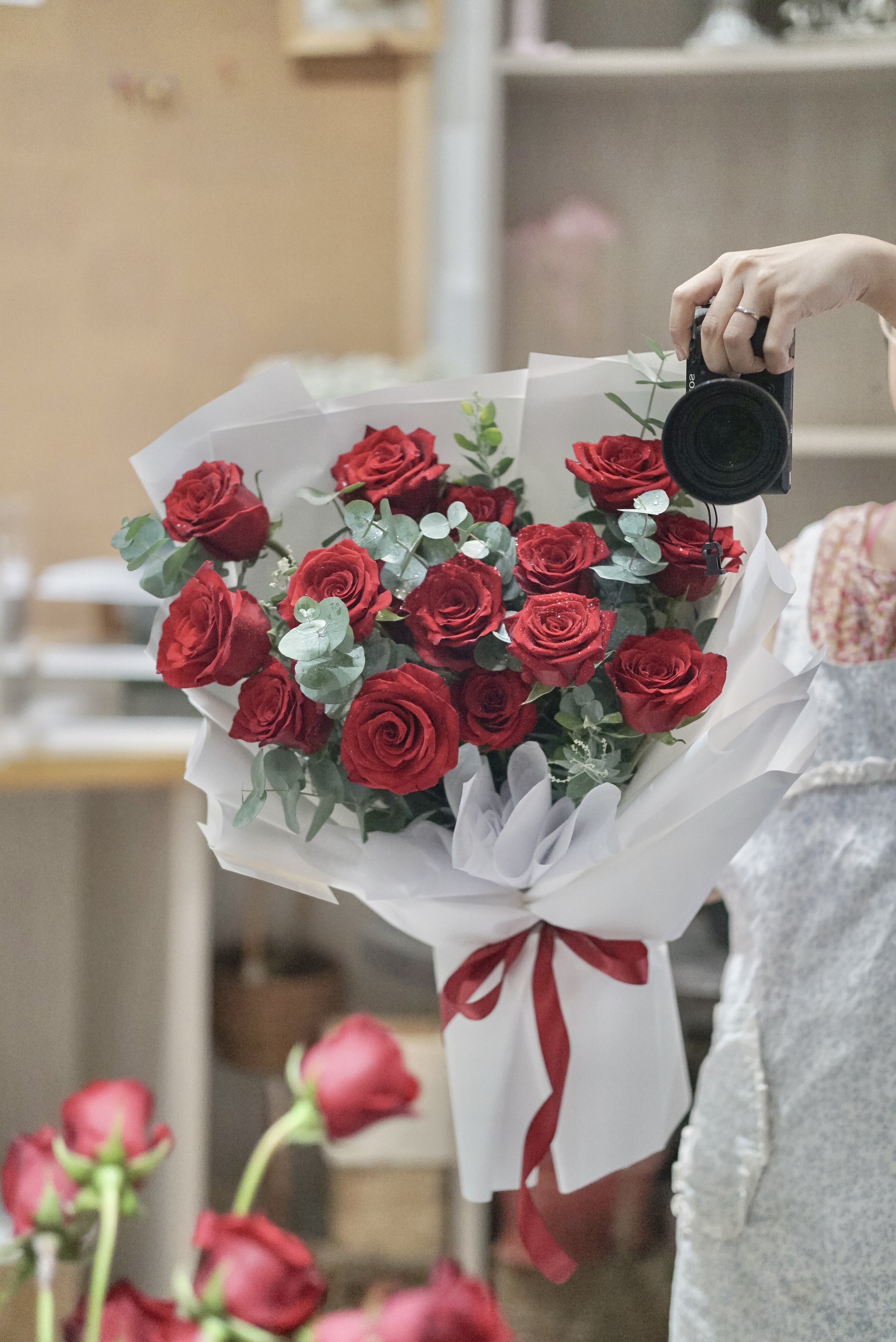 Bó hoa hồng đỏ nhung phù hợp tặng cho bạn gái nhân dịp các ngày lễ tình yêu 14/2. các cô gái cá tính mạnh mẽ