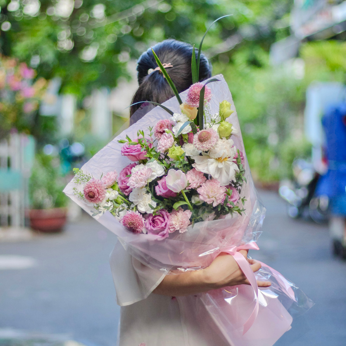 Chào người thương, mình là Thi. Tiệm hoa của mình mang phong cách Hàn Quốc, hoa lá nhẹ nhàng kết hợp tựa như 1 khúc nhạc giúp bạn gửi lời thì thầm yêu thương! Hãy nói cho mình biết nếu bạn đang băn khoăn không biết lựa chọn loại hoa nào!