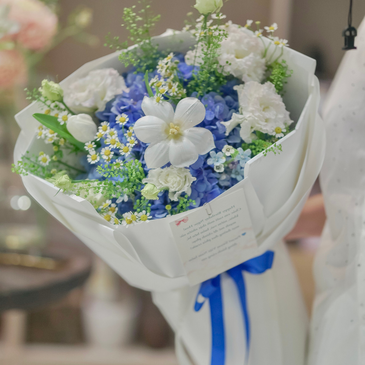 Hoa sinh nhật - bó hoa tú cầu xanh biển là món quà tuyệt vời để gửi gắm tình cảm chân thành đến người thân yêu trong ngày đặc biệt. Những bông hoa tú cầu xanh biển tươi mát, với sắc màu dịu dàng và thanh thoát, sẽ mang đến không gian thêm phần tươi mới và tràn đầy sức sống.