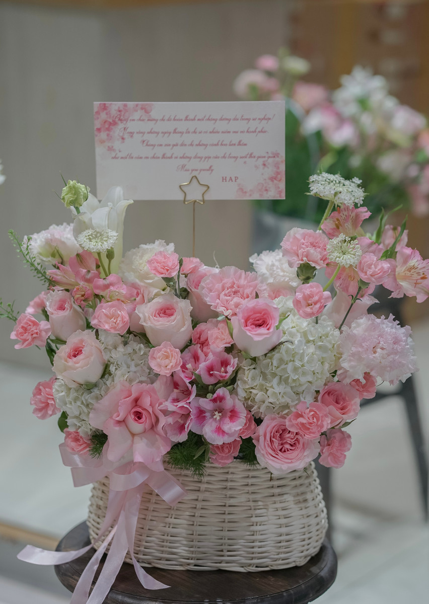 Hoa sinh nhật- Giỏ hoa tone trắng hồng sang trọng