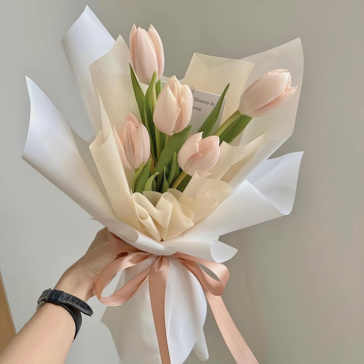Người ta thường sợ tặng bó hoa màu hồng sẽ bị sến, nhưng đối với bó hoa tulip này, bạn có thể hoàn toàn yên tâm.