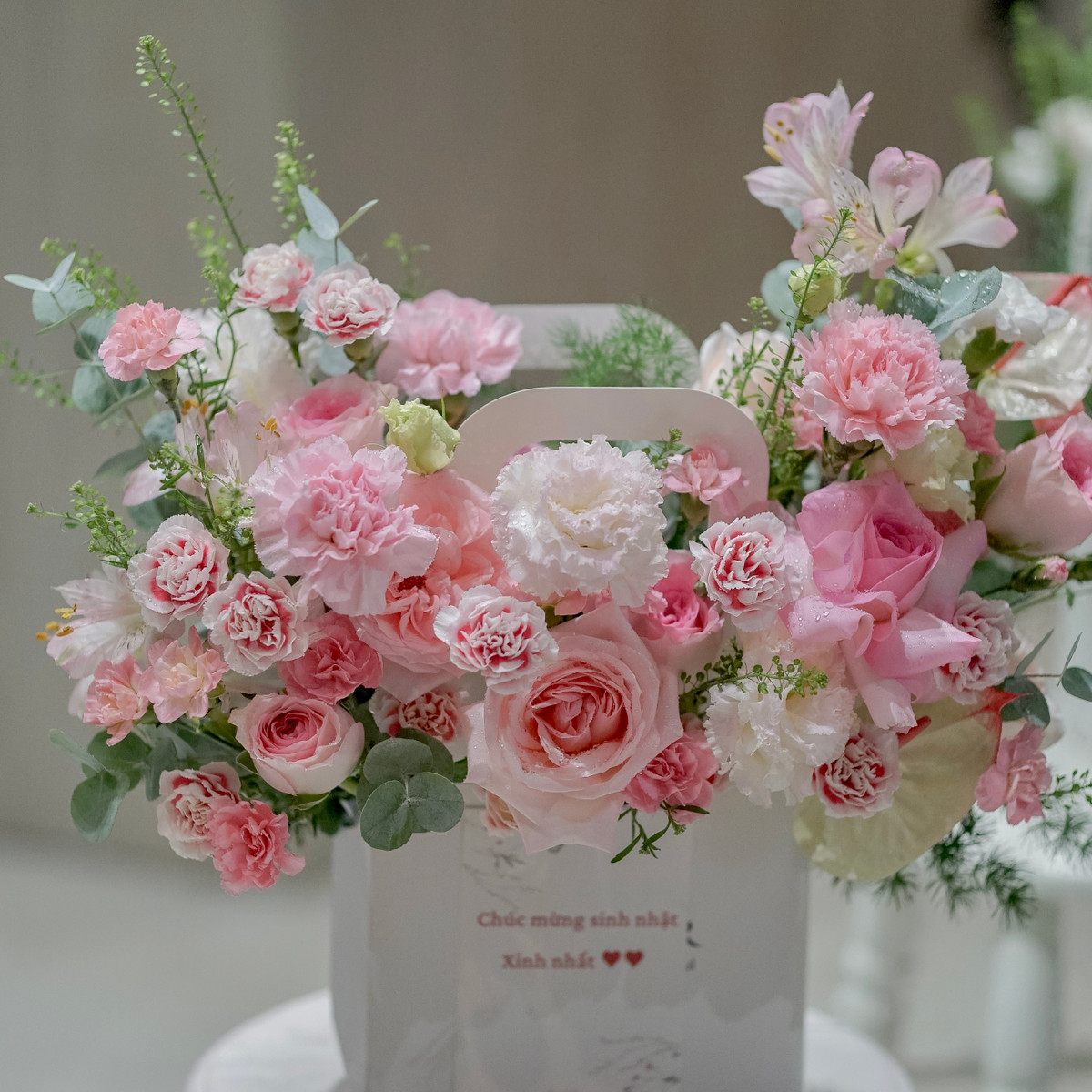 Hãy để món quà này thay bạn nói lên những lời yêu thương chân thành, tạo nên những kỷ niệm đáng nhớ. Chắc chắn rằng, túi hoa tone hồng lãng mạn này sẽ làm cho ngày sinh nhật của người thân trở nên thật ý nghĩa và tràn đầy hạnh phúc!