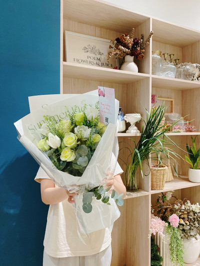 Chào người thương, mình là Thi. Tiệm hoa của mình mang phong cách Hàn Quốc, hoa lá nhẹ nhàng kết hợp tựa như 1 khúc nhạc giúp bạn gửi lời thì thầm yêu thương! Hãy nói cho mình biết nếu bạn đang băn khoăn không biết lựa chọn loại hoa nào!