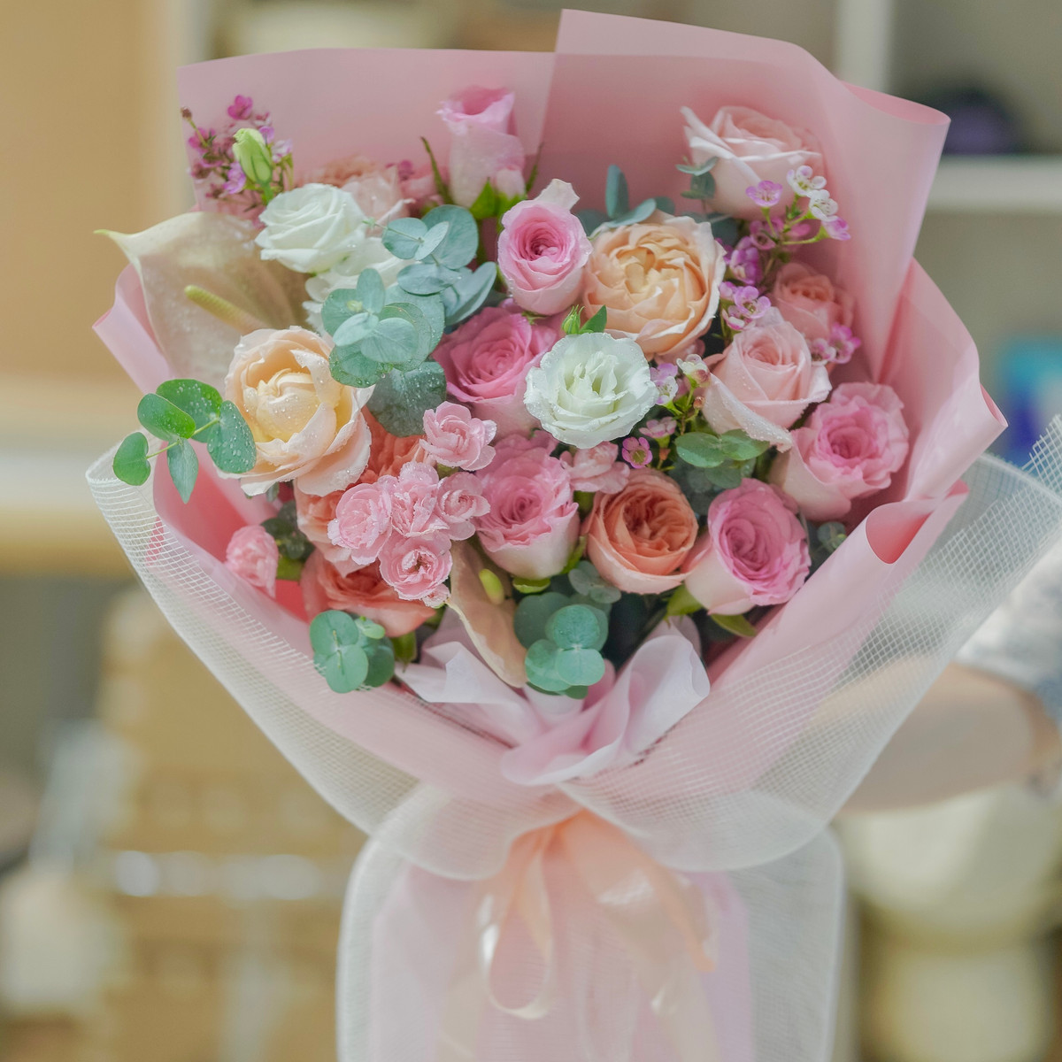 Chào người thương, mình là Thi. Tiệm hoa của mình mang phong cách Hàn Quốc, hoa lá nhẹ nhàng kết hợp tựa như 1 khúc nhạc giúp bạn gửi lời thì thầm yêu thương! Hãy nói cho mình biết nếu bạn đang băn khoăn không biết lựa chọn loại hoa nào!
