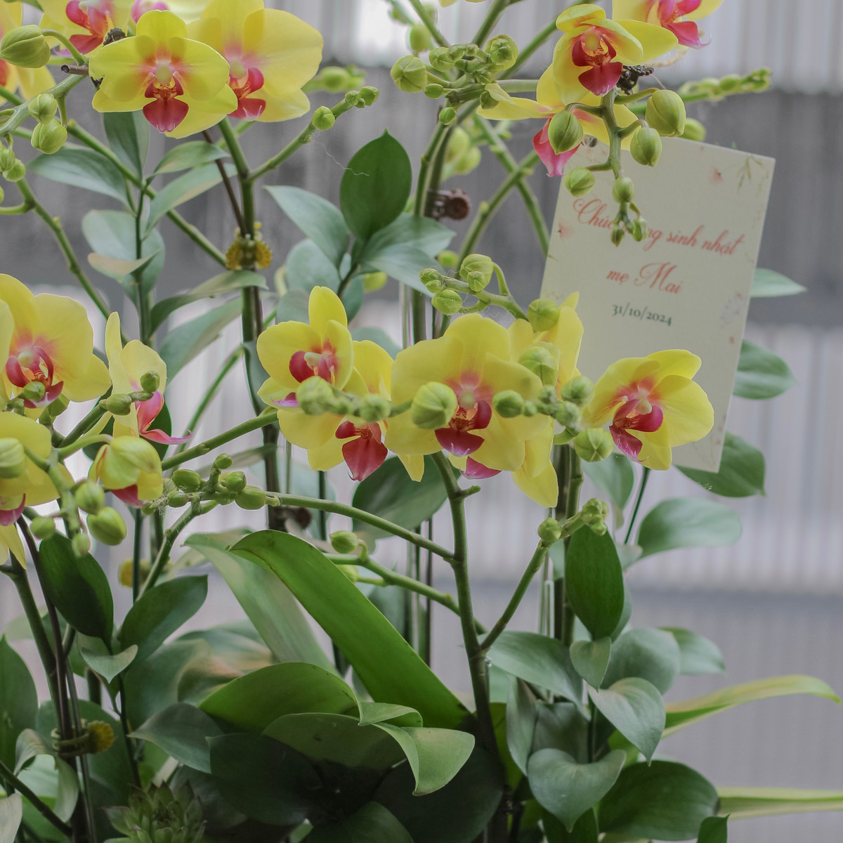 Chậu hoa lan hồ điệp nhí vàng phù hợp tặng bà và mẹ cho các dịp mừng sinh nhật, tặng thầy cô dịp lễ 20/11 và các dịp chúc mừng đặc biệt khác
