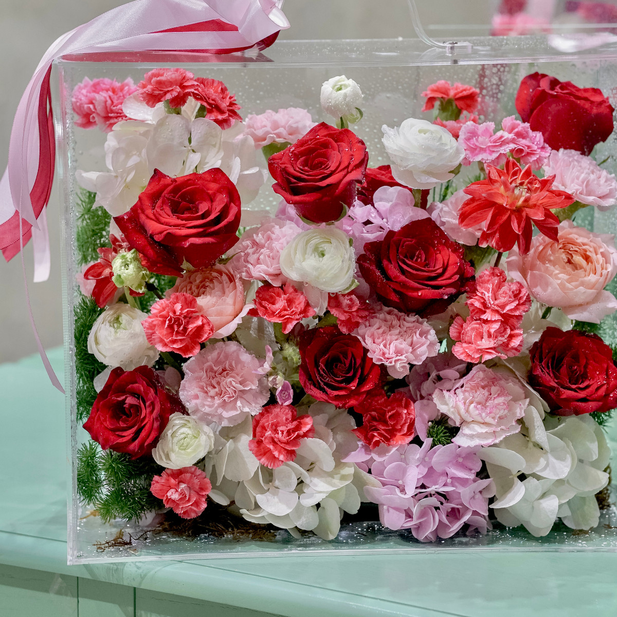 Hãy để Hoa thiết kế của chúng tôi mang đến cho bạn món quà ngọt ngào và lãng mạn với hộp vali hoa tone hồng đỏ quyến rũ. Mỗi bông hoa trong hộp không chỉ là sự kết hợp tinh tế của sắc màu mà còn là lời gửi gắm yêu thương chân thành, làm say đắm trái tim người nhận.
