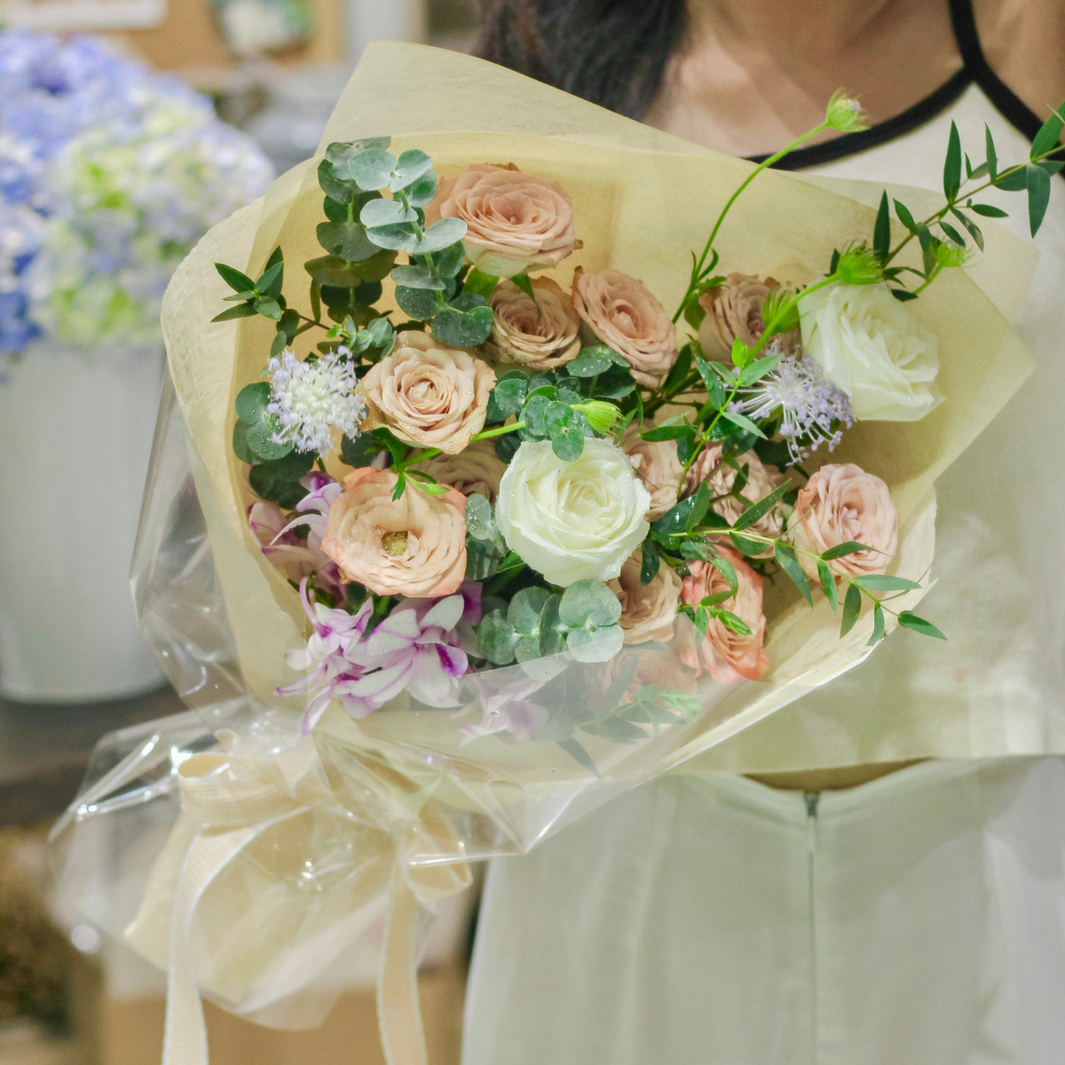 Chào người thương, mình là Thi. Tiệm hoa của mình mang phong cách Hàn Quốc, hoa lá nhẹ nhàng kết hợp tựa như 1 khúc nhạc giúp bạn gửi lời thì thầm yêu thương! Hãy nói cho mình biết nếu bạn đang băn khoăn không biết lựa chọn loại hoa nào!