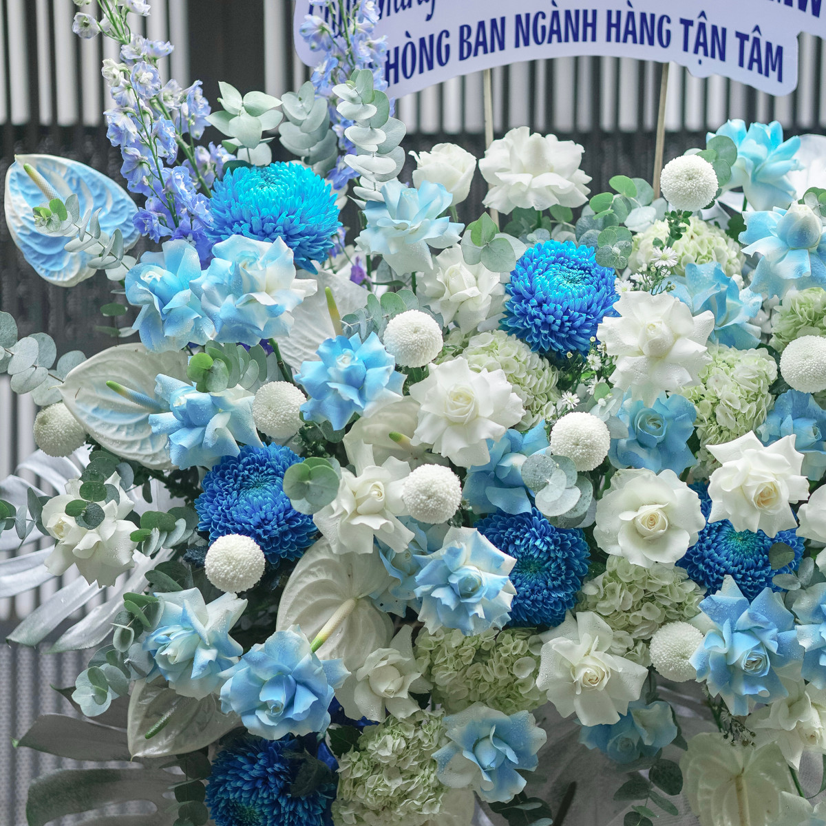 Hãy gửi gắm sự trân trọng và chuyên nghiệp với lẵng hoa xanh dương tặng đối tác khách hàng cao cấp, món quà sang trọng và ý nghĩa. Lẵng hoa xanh dương không chỉ thể hiện phong cách tinh tế mà còn truyền tải thông điệp hợp tác bền vững và thành công vượt trội.