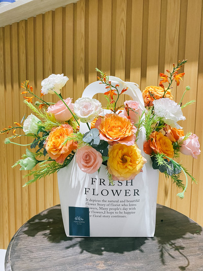 Túi hoa hồng cam phù hợp tặng bà và mẹ cho các dịp mừng sinh nhật, tặng thầy cô dịp lễ 20/11 và các dịp chúc mừng đặc biệt khác